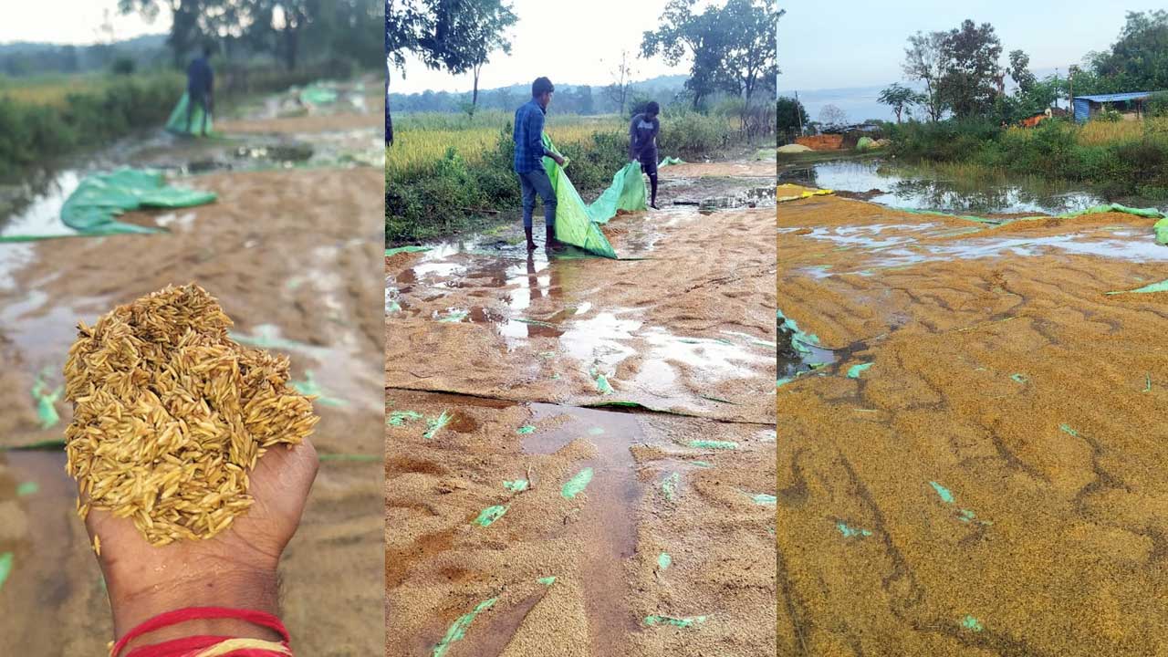 ఎల్లారెడ్డి మండలంలో భారీ వర్షం కురిసింది. కోతకు వచ్చిన పంటలు నేలవాలాయి. జంగంపల్లి కుర్డు, లక్ష్మాపూర్, రాంపూర్, కొట్టాల్ ప్రాంతంలోని రైతులు (Farmers) ఆయా ప్రాంతాలలో ఆరబెట్టిన ధాన్యం తడిసిపోయింది. భారీ వర్షం (heavy rain) రావడంతో వరదకు వడ్లు కొట్టుకుపోయాయని రైతులు ఆవేదన వ్యక్తం చేస్తున్నారు. తడిసిన ధాన్యాన్ని రక్షించుకునేందుకు వ్యయ ప్రయాసలు పడుతున్నారు. పంటలు ఇంటికి వచ్చే తరుణంలో తడిసి రంగు మారటంతో పాటు ముక్కిన వాసన వస్తున్నాయని ఆందోళన చెందుతున్నారు. వర్షాలకు తడిసిన ధాన్యాన్ని సైతం కొనుగోలు చేయాలని కోరుతున్నారు.