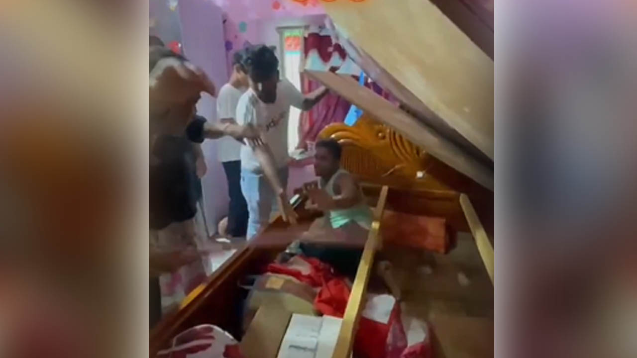 మంచం కింద ఒక యువకుడు దాగి ఉన్నాడు. దీనితో ఆ వ్యక్తిని బయటకు లాగి, అక్కడే ఉన్న వ్యక్తులు కర్రలతో చితకబాదారు. ఈ సమయంలో పలువురు మహిళలు అతనిపై కోపం వ్యక్తం చేస్తూ గొడవకు దిగారు. వీడియోలో కనిపించిన దృశ్యాల ప్రకారం, భర్తకు తెలియకుండా భార్య తన ప్రియుడిని ఇంట్లోకి పిలిపించుకుని మంచం కింద దాచినట్టు సమాచారం. ఈ విషయం భర్తకు తెలియడంతో, అతడు స్నేహితులతో కలిసి అక్కడకు వెళ్లి ఈ దృశ్యాన్ని బయటపెట్టినట్టు తెలుస్తోంది.ఈ వీడియో ప్రస్తుతం సోషల్ మీడియాలో 1.1 మిలియన్ వ్యూస్, 3,700కి పైగా లైక్స్ ను సాధించింది. వీడియోపై నెటిజన్లు కూడా విభిన్నంగా స్పందిస్తున్నారు.