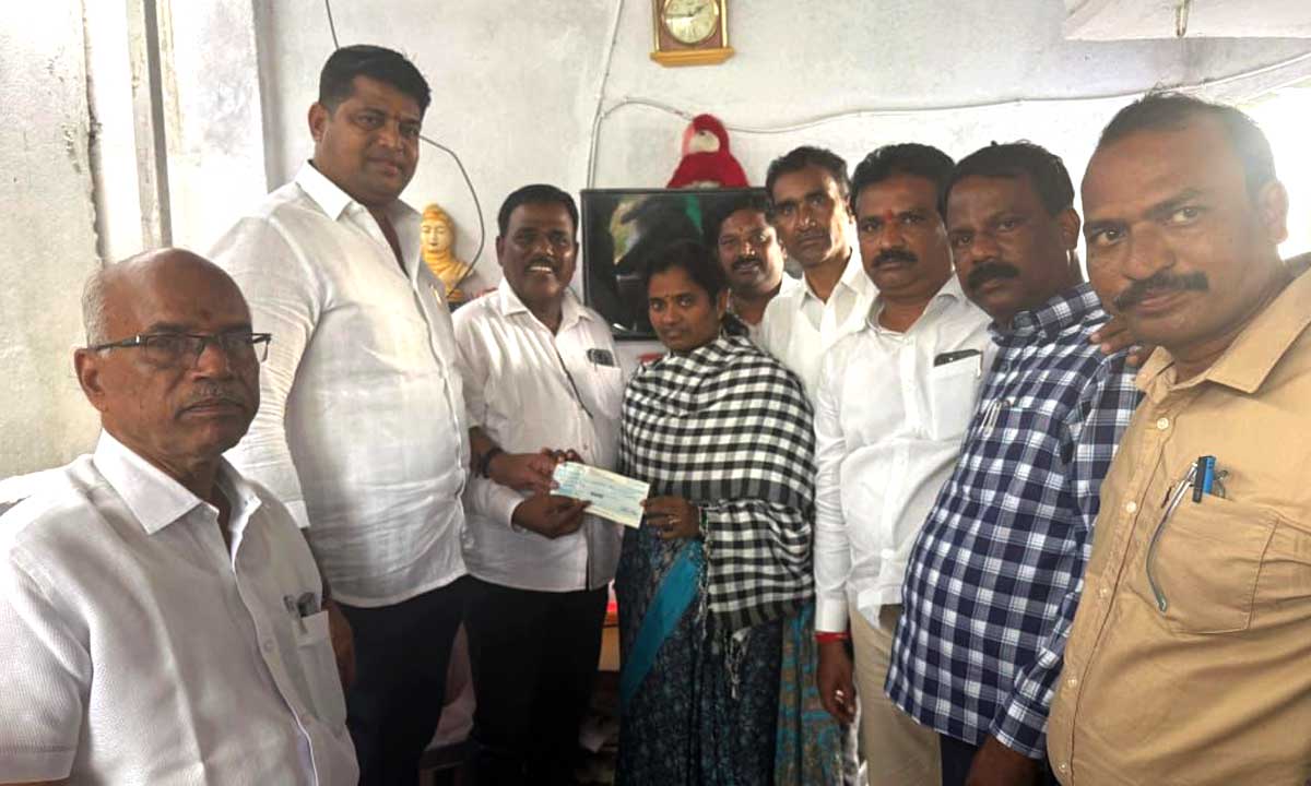 అనంతరం జిల్లా ఐకేపీ సిబ్బంది ద్వారా విరాళాల రూపంలో పోగు చేసిన రూ.75వేలను టీఎన్జీవో కార్యదర్శి శేఖర్, ఐకేపీ యూనియన్ రాష్ట్ర అధ్యక్షుడు కుంట గంగాధర్, జిల్లా జేఏసీ ఛైర్మన్ బత్తుల మాణిక్యం, రవి విఠల్తో కలిసి మృతుడి భార్యకు అందజేశారు. ఈ సందర్భంగా ఆయన మాట్లాడుతూ.. రాష్ట్ర ప్రభుత్వం (state government) ఉద్యోగుల సంక్షేమం కోసం సానుకూలంగా వ్యవహరిస్తుందని, ఐకేపీ ఉద్యోగుల సంఘం ఆధ్వర్యంలో కారుణ్య నియామకాల కోసం ఇచ్చిన వినతిపై ఫైల్ ఆర్థిక శాఖకు చేరిందన్నారు.