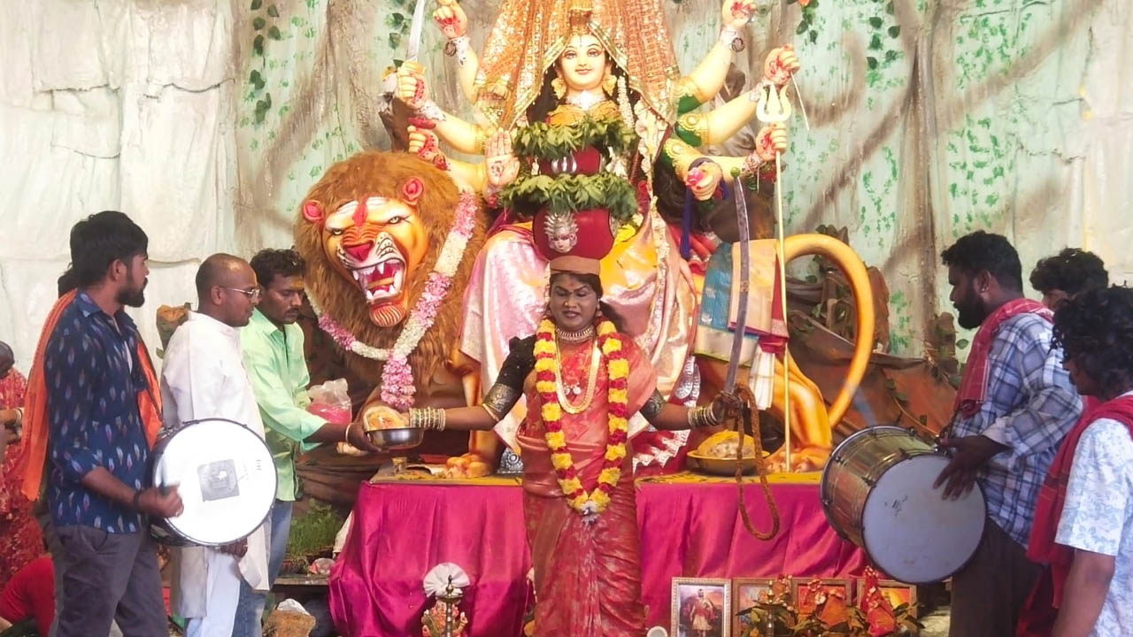 అక్షరటుడే, బోధన్ : Bodhan | పట్టణంలోని శక్కర్ నగర్ (Shakkar Nagar) కాలనీ దేవిగల్లిలో దేవీ నవరాత్రి ఉత్సవాలు (Navratri Celebrations) వైభవంగా జరుగుతున్నాయి. ఇందులో భాగంగా బుధవారం దేవిమాత వద్ద పెద్దపట్నం బోనాల ఊరేగింపు నిర్వహించారు. నిజామాబాద్ (Nizamabad) జిల్లాకేంద్రానికి చెందిన నాని గౌడ్ బృందం ఆధ్వర్యంలో ఏర్పాటు చేసిన ఇందూరు మాతంగి మహా బోనం, పెద్దపట్నంలో చేసిన విన్యాసాలు అందరినీ ఆకట్టుకున్నాయి. మహా బోనం, పెద్దపట్నం నవరాత్రి ఉత్సవాల్లో ప్రత్యేక ఆకర్షణగా నిలిచాయి.
