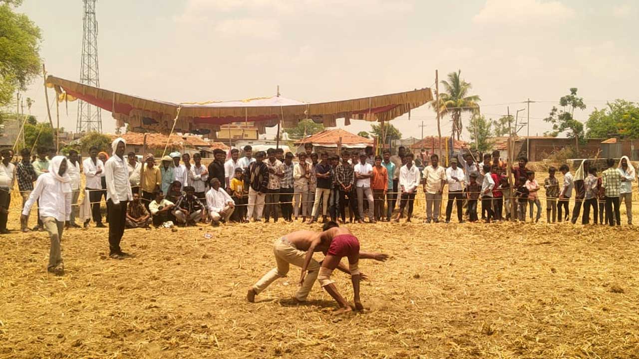 అక్షరటుడే, నిజాంసాగర్:Wrestling competitions | నిజాంసాగర్ మండల కేంద్రంలో గురువారం నిర్వహించిన కుస్తీ పోటీలు (Wrestling competitions) ఆహుతులను ఆకట్టుకున్నాయి. శ్రీ మద్విరాట్ పోతులూరి వీరబ్రహ్మేంద్రస్వామి జాతర (Sri Madvirat Potuluri Veerabrahmendraswamy Jatara)లో భాగంగా బుధవారం బోనాలు, రథోత్సవం నిర్వహించారు. కుస్తీ పోటీల్లో విజేతలకు రూ.3వేల నగదు బహుమతిని అందజేశారు. పోటీల్లో పాల్గొనేందుకు ఇతర రాష్ట్రాల నుంచి కూడా మల్లయోధులు (Wrestlers) తరలివచ్చారు. కార్యక్రమంలో గ్రామ పెద్దలతో పాటు ఆలయ కమిటీ నిర్వాహకులు, భక్తులు, తదితరులు పాల్గొన్నారు.