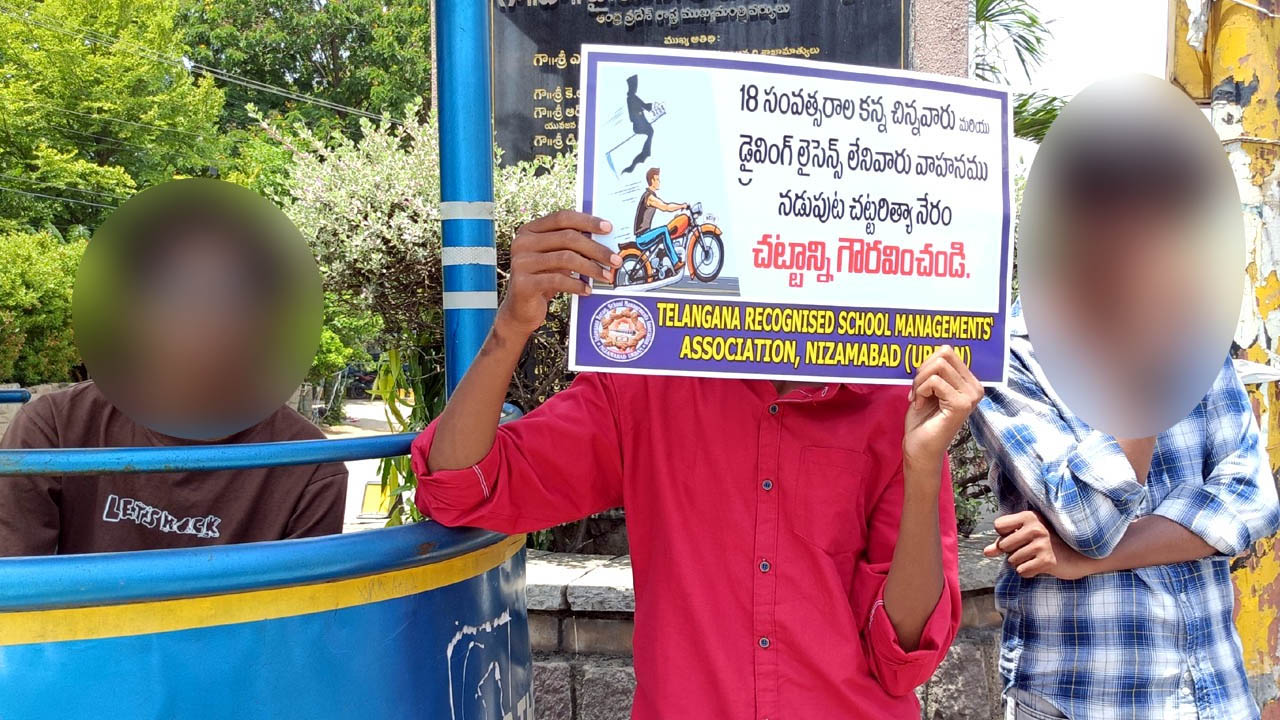 నిజామాబాద్(Nizamabad) నగరంలో వాహనం నడుపుతూ దొరికిన మైనర్లకు జరిమానాలు విధించడంతో పాటు వినూత్న అమలు చేస్తున్నారు. జిల్లా వ్యాప్తంగా చేపట్టిన తనిఖీల్లో అత్యధికంగా మైనర్లు జిల్లా కేంద్రంలోనే పట్టుబడుతున్నారు. గత వారం రోజులుగా చేపట్టిన తనిఖీల్లో 36 మంది దొరకడం గమనార్హం. దీంతో జిల్లా పోలీసులు చిక్కిన మైనర్లతోనే ప్రచారం చేయిస్తున్నారు. జిల్లా కేంద్రంలోని ప్రధాన చౌరస్తాలో, సిగ్నల్స్ వద్ద ప్లకార్డులు పట్టుకొని మైనర్ డ్రైవింగ్తో జరిగే అనర్థాలపై ప్రచారం చేయిస్తున్నారు.