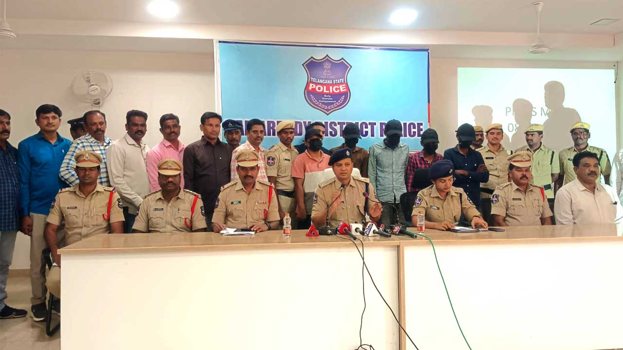 అక్షరటుడే, కామారెడ్డి: Kamareddy SP | జిల్లాలో పలు ప్రాంతాల్లో చోరీలకు పాల్పడుతున్న అంతర్ జిల్లా దొంగల ముఠాను పోలీసులు అరెస్ట్ చేశారు. ఈ మేరకు శనివారం జిల్లా పోలీసు కార్యాలయంలో ఏర్పాటు చేసిన విలేకరుల సమావేశంలో ఎస్పీ రాజేష్ చంద్ర (District SP Rajesh Chandra) వివరాలు వెల్లడించారు.