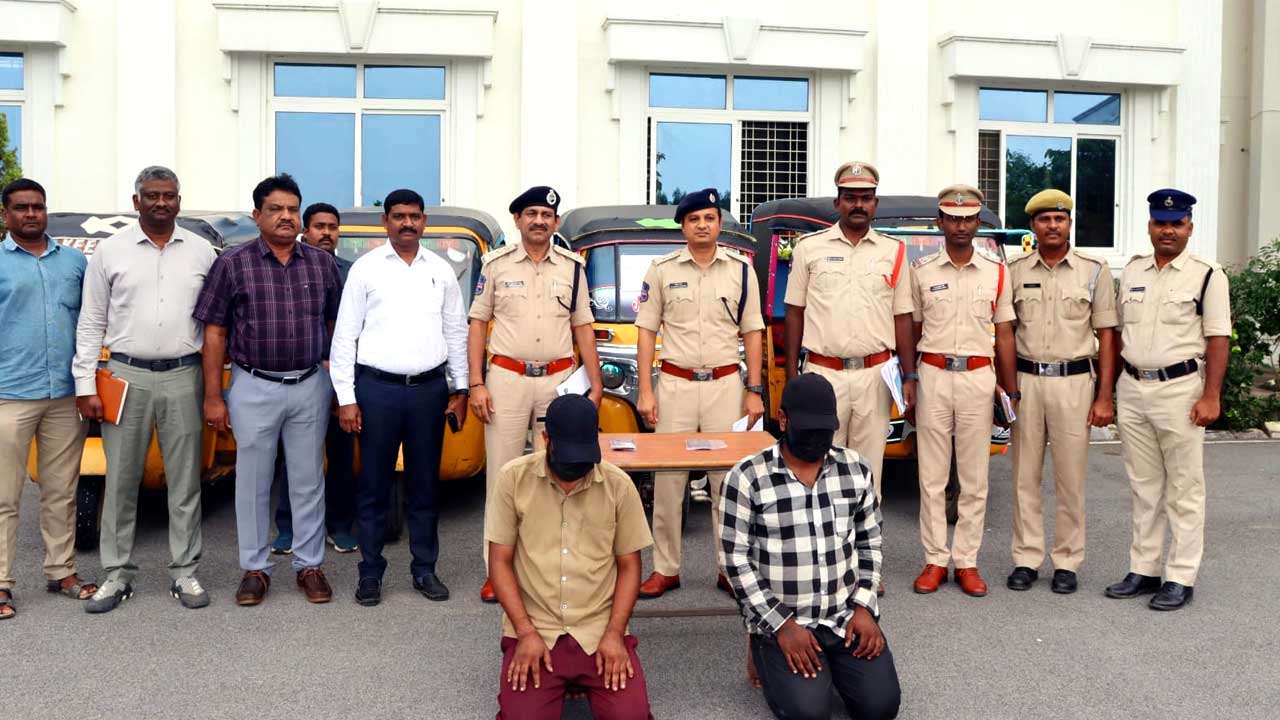 నిజామాబాద్ జిల్లా (Nizamabad district) మోపాల్ మండలం మంచిప్ప గ్రామానికి చెందిన కనుగుల(కుమ్మరి) రాజు, నిజామాబాద్ మండలం గూపన్పల్లి గ్రామానికి చెందిన కొల్ల దుర్గారాజులను పోలీసులు అరెస్ట్ చేశారు. వీరి వద్ద నుంచి రూ. 2.45 లక్షల విలువ చేసే నాలుగు ఆటోలను, 2 మొబైళ్లను స్వాధీనం చేసుకున్నామని ఎస్పీ తెలిపారు. ఇందులో కనుగుల రాజుపై కరీంనగర్ జిల్లాలో 12, జగిత్యాలలో 3, నిజామాబాద్ జిల్లాలో 3, కామారెడ్డి, మెదక్ జిల్లాలో ఒకటి చొప్పున మొత్తం 20 కేసులు ఉన్నాయన్నారు. కేసును త్వరితగతిన ఛేదించిన నాగిరెడ్డిపేట పోలీసు సిబ్బందిని ఎస్పీ అభినందించారు.