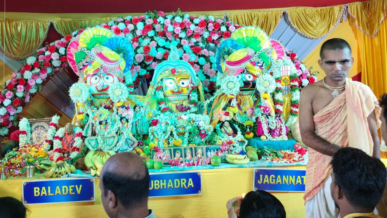 అక్షరటుడే, ఇందూరు:Jagannath Rath Yatra | ఇస్కాన్ ఆధ్వర్యంలో నిజామాబాద్(Nizamabad) నగరంలో శుక్రవారం మధ్యాహ్నం ఒంటి గంటకు జగన్నాథ రథయాత్ర అంగరంగ వైభవంగా నిర్వహించనున్నారు. ఎనిమిది రోజులుగా నగరంలోని గాంధీ గంజ్(Gandhi Ganj)లో ఏర్పాటు చేసిన ప్రత్యేక మండపంలో వివిధ కార్యక్రమాలను నిర్వహించారు. ప్రతిరోజు ఉదయం, సాయంత్రం తెలుగు హిందీ భాషల్లో భాగవత సప్తాహం, పల్లకీ సేవ, ఊంజల్ సేవ, చప్పన్ భోగ్, అభిషేకం సాంస్కృతిక కార్యక్రమాలతో అలరించారు. ఇస్కాన్ ఆధ్యాత్మికవేత్త ప్రణవానంద దాస్(Pranavananda Das) హాజరై ప్రవచనాలు ఇచ్చారు. ఎనిమిది సంవత్సరాలుగా గాంధీ గంజ్లో బలరాముడు, సుభద్ర, జగన్నాథుడి విగ్రహాలతో మండపం ఏర్పాటు చేస్తున్నారు.