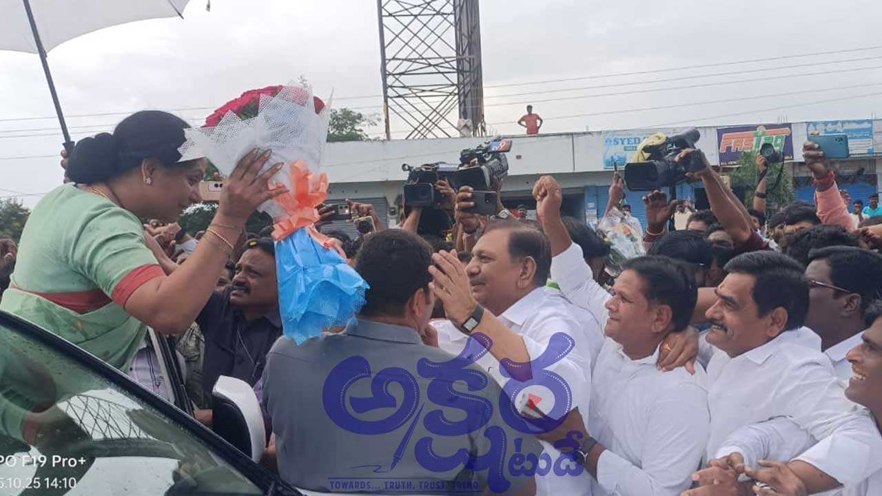 అక్షరటుడే, ఇందల్వాయి: Kalvakuntla Kavitha | తెలంగాణ జాగృతి అధ్యక్షురాలు, (Telangana Jagruthi) ఎమ్మెల్సీ కల్వకుంట్ల కవిత జిల్లాకు చేరుకున్నారు. ఈ సందర్భంగా ఇందల్వాయి టోల్ప్లాజా వద్ద శనివారం మధ్యాహ్నం ఆమెకు జాగృతి కార్యకర్తలు ఘనంగా స్వాగతం పలికారు.