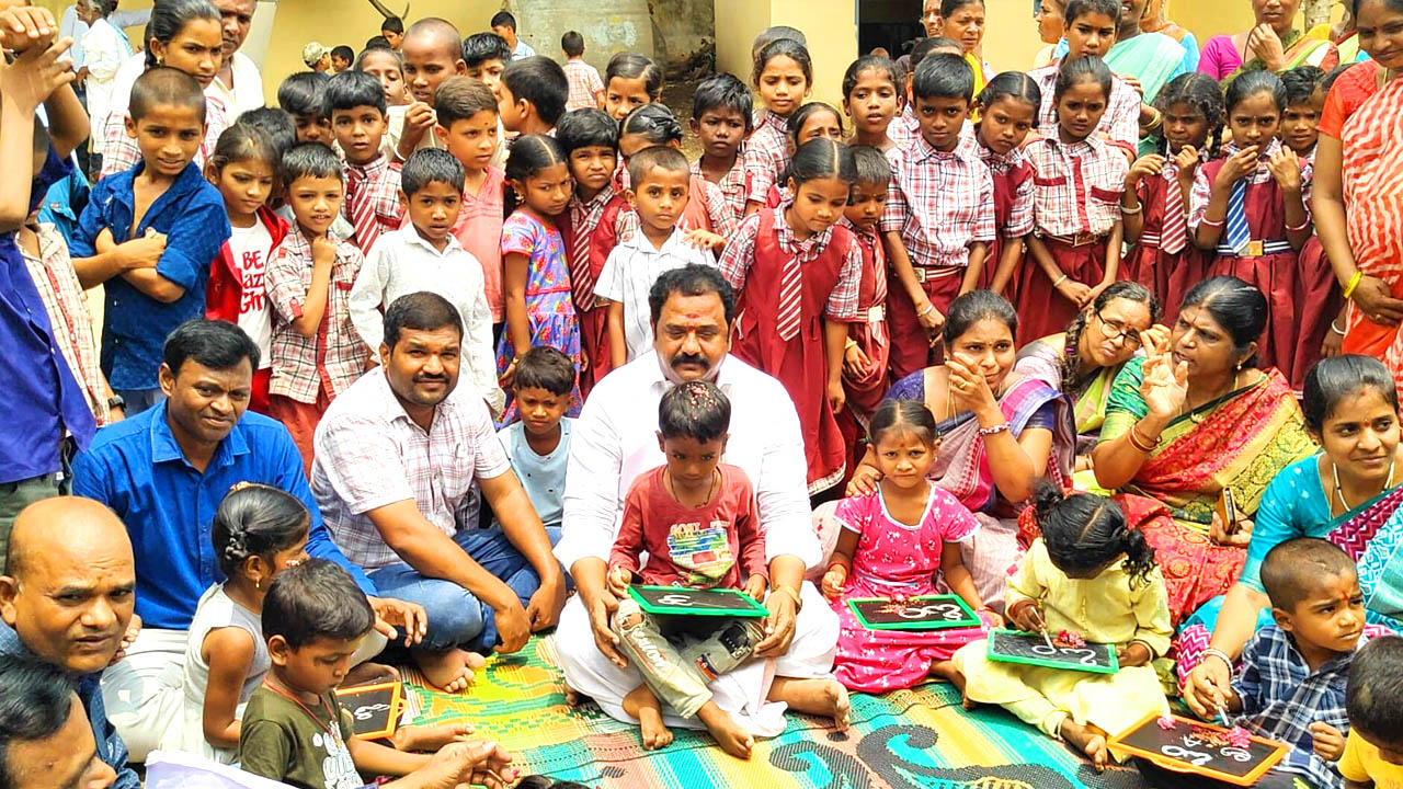 ఈ కార్యక్రమానికి ఎమ్మెల్యే కాటిపల్లి వెంకటరమణ రెడ్డి (MLA Katipalli Venkataramana Reddy) హాజరై చిన్నారులకు స్వయంగా అక్షరాభ్యాసం చేయించారు. అనంతరం ఆయన మాట్లాడుతూ.. ప్రభుత్వ పాఠశాలల్లో విద్యార్థులకు ప్రభుత్వం అన్ని వసతులు, నాణ్యమైన విద్య, మధ్యాహ్న భోజనం అందిస్తోందన్నారు. పాఠశాల అభివృద్ధికి సహకరిస్తానని హామీ ఇచ్చారు. కార్యక్రమంలో పాఠశాల ఉపాధ్యాయులు, విద్యార్థుల తల్లిదండ్రులు పాల్గొన్నారు.