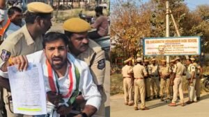 ఎమ్మెల్యే సవాల్ ప్రకారం సరస్వతి శిశుమందిర్ పాఠశాలకు ఆధారాలతో సహా వచ్చామని, ఎమ్మెల్యే ఎక్కడున్నాడని ఎన్ఎస్యూఐ (NSUI) జిల్లా అధ్యక్షుడు సందీప్ ప్రశ్నించారు. కళాశాల భూములను ఎమ్మెల్యే రమణారెడ్డి అరోరా కాలేజీకి ధారాదత్తం చేశారని ఆరోపించారు. ఆధారాలతో వచ్చి నిరూపించాలని సవాల్ చేసిన ఎమ్మెల్యే తోక ముడిచారని విమర్శించారు. కళాశాల గ్రౌండ్ వద్దకు చేరుకున్న సందీప్, కాంగ్రెస్ నాయకులను పోలీసులు అరెస్ట్ చేశారు.