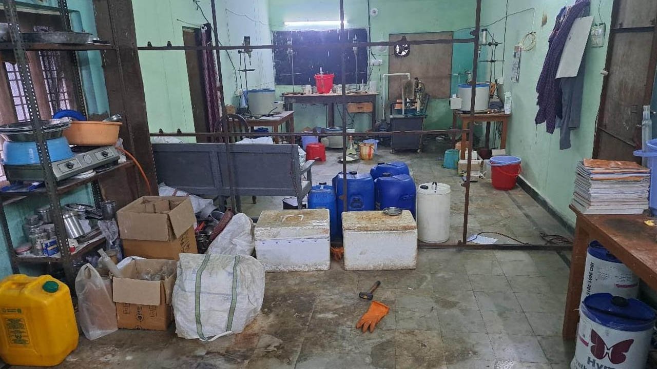మేధా పాఠశాలలలో డైరెక్టర్ జయప్రకాశ్ గౌడ్ డ్రగ్స్ తయారీ కోసం 8 రియాక్టర్లు(8 Reactors) ఏర్పాటు చేశారు. ఫ్యాక్టరీ తరహాలో రియాక్టర్లు పెట్టాడు. అదే భవనంలో నర్సరీ నుంచి టెన్త్ క్లాస్ వరకు పాఠశాల కొనసాగుతోంది. జీ+2 భవనంలో 6 గదుల్లో స్కూల్.. ఒక వైపు తరగతి గదులు, మరో వైపు డ్రగ్స్ తయారీ నిర్వహిస్తున్నారు. స్కూల్ సెలవు రోజుల్లో జయప్రకాష్ గౌడ్ డ్రగ్స్ విక్రయాలు చేపడుతున్నట్లు ఈగల్ టీమ్ పోలీసులు గుర్తించారు.