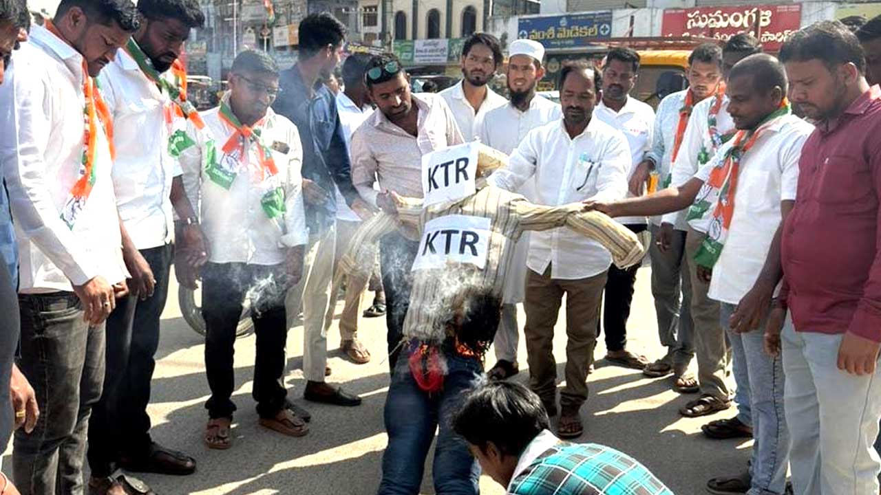 యువజన కాంగ్రెస్ జిల్లా ఉపాధ్యక్షుడు ఆరెపల్లి నాగేంద్రబాబు, నియోజకవర్గ అధ్యక్షుడు సేపూర్ చరణ్ గౌడ్ మాట్లాడుతూ.. రాహుల్ గాంధీ, ముఖ్యమంత్రి రేవంత్ రెడ్డిపై (CM Revanth Reddy) కేటీఆర్ అహంకారపూరితంగా మాట్లాడడం తగదన్నారు. వ్యక్తిగత విమర్శలు చేయడం కేటీఆర్కు అలవాటుగా మారిందని, తన వ్యాఖ్యలకు వెంటనే క్షమాపణ చెప్పాలని డిమాండ్ చేశారు. లేనిపక్షంలో ఉద్యమాలను మరింత ఉధృతం చేస్తామని హెచ్చరించారు.