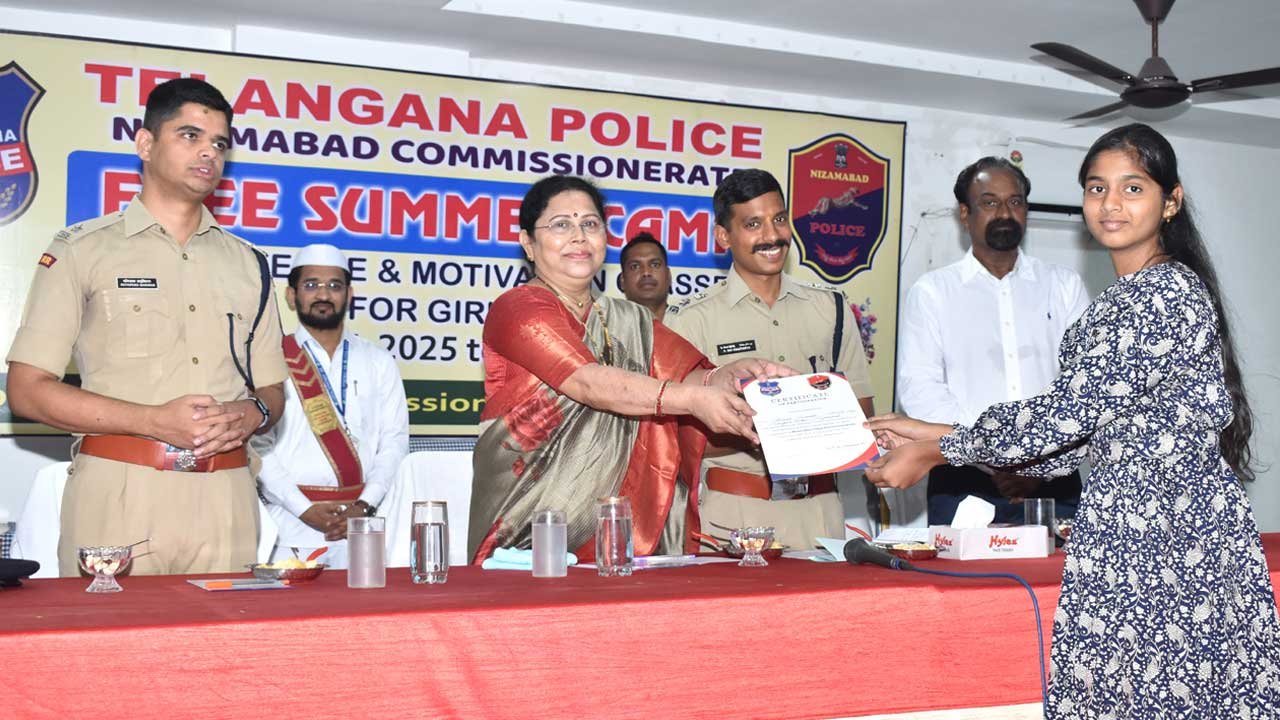 అక్షరటుడే, ఇందూరు: Police Summar Camp | తల్లిదండ్రులను గౌరవించడం నేర్చుకున్నప్పుడే విద్యార్థుల భవిష్యత్తు బాగుంటుందని జిల్లా జడ్జి జీవీఎన్ భరతలక్ష్మి(Judge GVN Bharathalakshmi) పేర్కొన్నారు. కమిషనరేట్ పరిధిలో పోలీస్శాఖ ఆధ్వర్యంలో నిర్వహించిన సమ్మర్క్యాంప్ ముగింపు కార్యక్రమంలో ఆమె మాట్లాడారు. క్యాంప్లో విద్యార్థినులకు ఈవ్టీజింగ్ను ఎదుర్కొనే మెళకువలు నేర్పించడం అభినందనీయమన్నారు. కేరీర్ బిల్డప్ (Career Buildup) కంటే క్యారక్టర్ బిల్డప్ (Character Buildup) అనేది చాలా ముఖ్యమైందన్నారు.