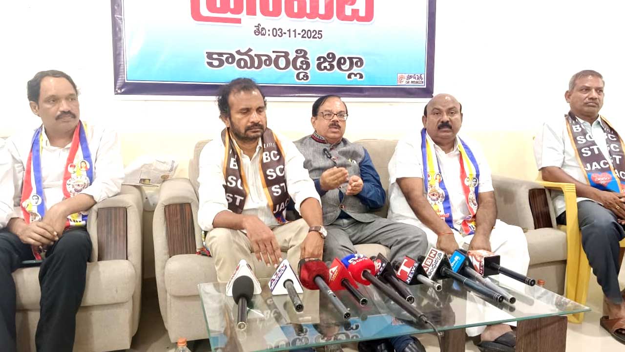 రిజర్వేషన్ సాధన సమితి ఏ రాజకీయ పార్టీకి (Political Party) చెందినది కాదని చిరంజీవులు స్పష్టం చేశారు. ఇందులో రాజకీయ పార్టీలకు స్థానం లేదని పేర్కొన్నారు. రిజర్వేషన్ల అమలుతో 25 వేల మంది రాజకీయాల్లోకి వస్తారని బీసీ డిక్లరేషన్లో కాంగ్రెస్ పేర్కొందని చెప్పారు. కులగణన చేస్తామని ప్రభుత్వం చెప్పిందని, బీసీ సంఘాల ఒత్తిడి మేరకే ప్రభుత్వం కులగణన చేపట్టింది తప్ప ప్రభుత్వానికి చిత్తశుద్ధి లేదన్నారు. తమిళనాడులో (tamil nadu) ఏ విధంగా అయితే రిజర్వేషన్ అమలు చేస్తున్నారో.. అదే విధానాన్ని ఇక్కడ అవలంబించాలని తాము మొదటి నుంచి చెబితే ఇప్పటివరకు అఖిల పక్షాన్ని ఢిల్లీకి తీసుకెళ్లలేదన్నారు.