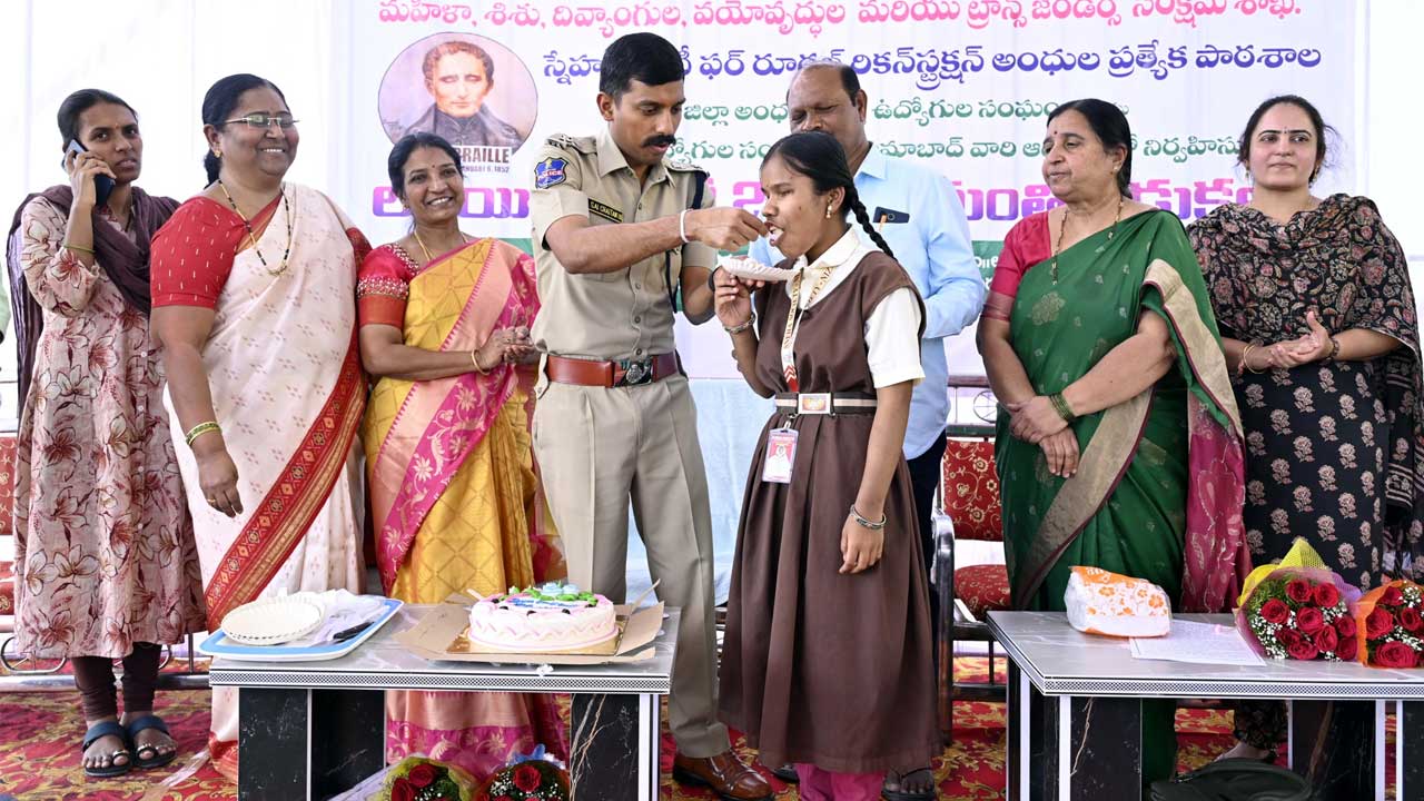 దివ్యాంగ ఉద్యోగులు, విద్యార్థులకు ఏమైనా సమస్యలు వస్తే పోలీస్శాఖ (police department) ఎప్పుడూ అండగా ఉంటుందని సీపీ హామీ ఇచ్చారు. అనంతరం సీపీ అంధ విద్యార్థులకు కేక్ తినిపించారు. అనంతరం నోట్పుస్తకాలు, పెన్నులు పంపిణీ చేశారు. అంధ విద్యార్థిని రజిని స్నేహ సొసైటీ పాఠశాలకు రూ.50వేల విలువైన బెంచీలను విరాళంగా అందించారు. ఈ కార్యక్రమంలో జిల్లా సంక్షేమ అధికారి రసూల్ బీ, స్నేహ సొసైటీ అంధుల ప్రత్యేక పాఠశాల ప్రిన్సిపల్ జ్యోతి, పాఠశాల డైరెక్టర్ సిద్ధయ్య, మానసిక వికలాంగుల పాఠశాల ప్రిన్సిపల్ రాజేశ్వరి, అర్బన్ సీడీపీవో సౌందర్య, అంధ ప్రభుత్వ ఉద్యోగుల సంఘం అధ్యక్షుడు సాయన్న, నేషనల్ ఫెడరేషన్ ఆఫ్ బ్లైండ్ రాష్ట్ర జాయింట్ సెక్రెటరీ ఆరోగ్య రాజు, 100 నిరుద్యోగుల సంఘం అధ్యక్షుడు ఇలియాజుద్దీన్ పాల్గొన్నారు.