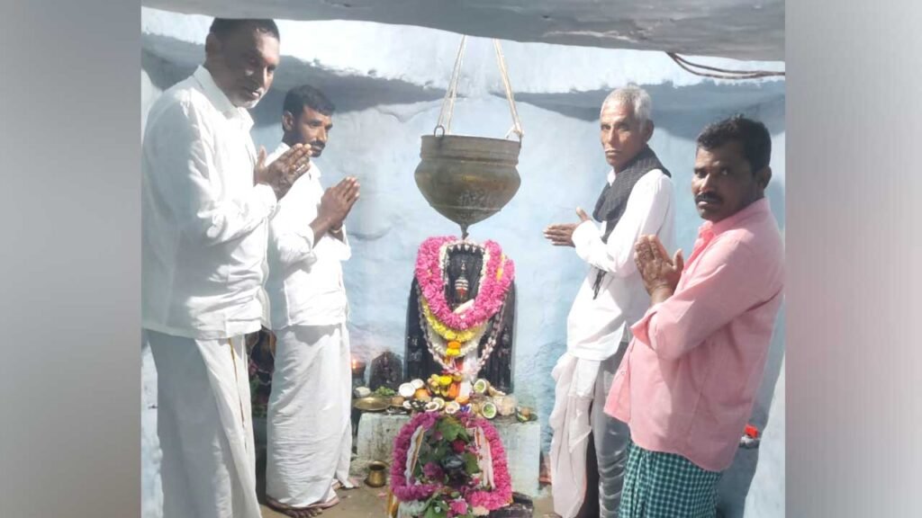 తాండూర్ త్రిలింగేశ్వర స్వామి ఆలయంలో వెండి శివలింగం కవచాన్ని అందిస్తున్న భక్తులు