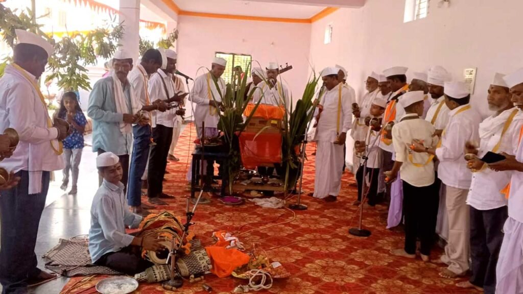 బిచ్కుంద మండలంలోని భోగేశ్వర ఆలయంలో సప్తాహ నిర్వహిస్తున్న దృశ్యం