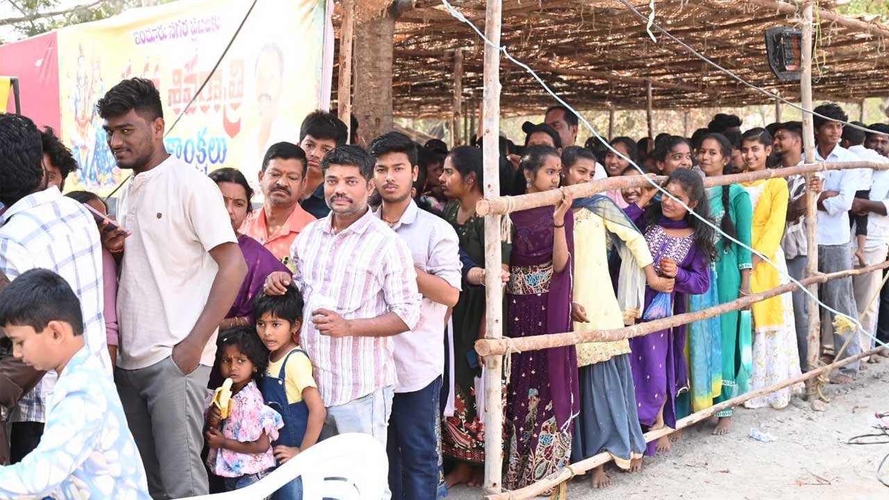 భీమ్గల్ మండలం బడాభీంగల్ లోని రాజరాజేశ్వర స్వామి ఆలయంలో దర్శనం కోసం బారులు తీరిన భక్తులు