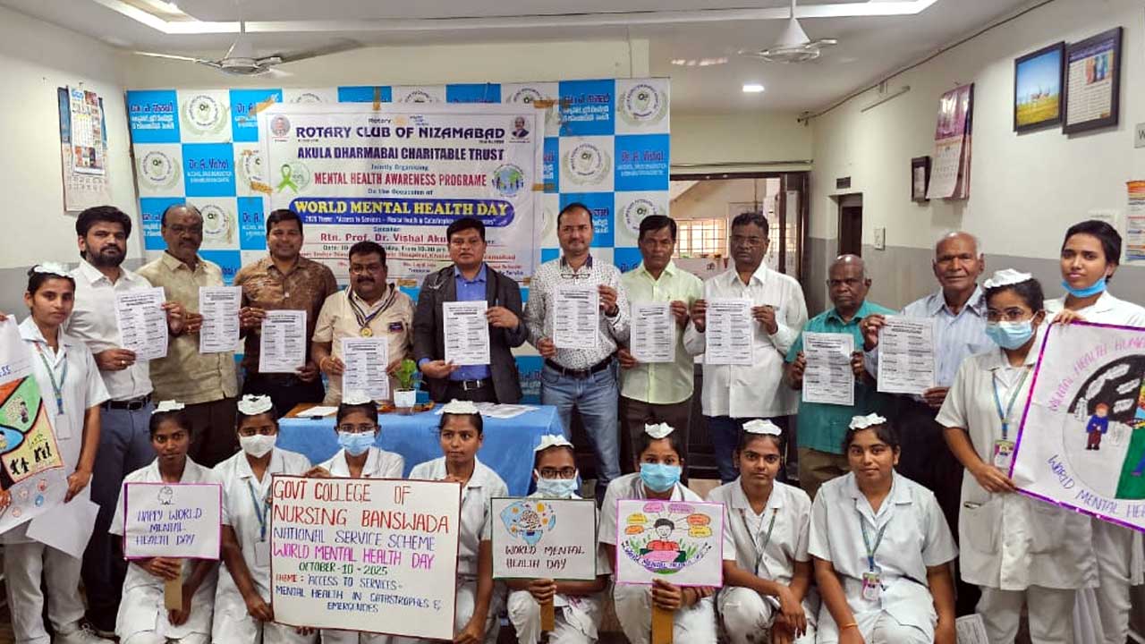 అక్షరటుడే, ఇందూరు: World Mental Health Day | మానసిక ఆరోగ్యమే మనిషికి మహాబలమని ప్రముఖ మానసిక వైద్య నిపుణులు డాక్టర్ విశాల్ అన్నారు. ప్రపంచ మానసిక ఆరోగ్య దినోత్సవాన్ని పురస్కరించుకొని రోటరీ క్లబ్ ఆఫ్ నిజామాబాద్ (Rotary Club Nizamabad), ధర్మాబాయి చారిటబుల్ ట్రస్ట్ (Dharmabai Charitable Trust) సంయుక్త ఆధ్వర్యంలో ఖలీల్వాడిలో (Khalelwadi) డ్రగ్ డీ అడిక్షన్ సెంటర్లో (Drug de-addiction center) శుక్రవారం అవగాహన సదస్సు నిర్వహించారు.