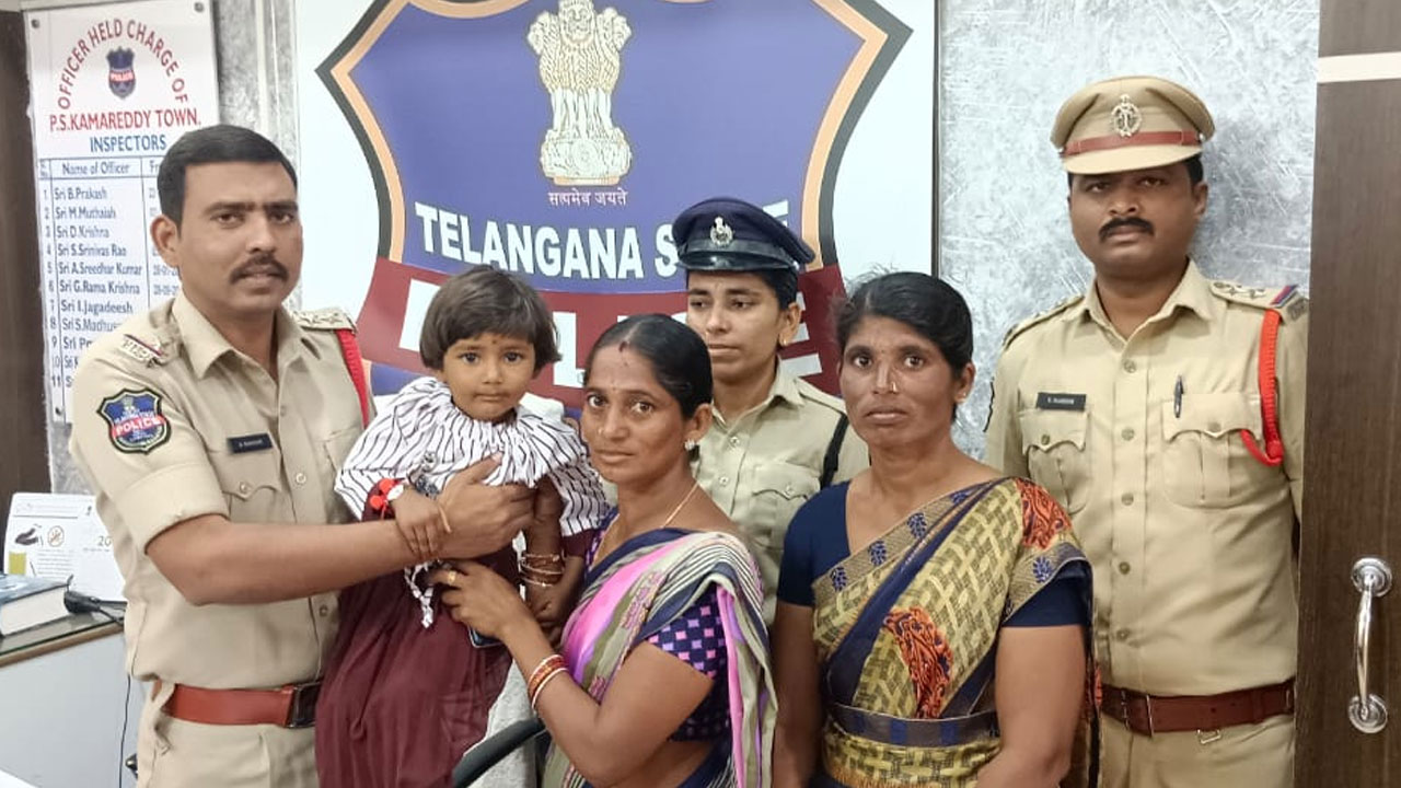పట్టణ సీఐ నరహరి (CI Narahari) తెలిపిన వివరాల ప్రకారం.. పట్టణంలోని ఆర్బీ నగర్ (RB Nagar)కు చెందిన కడమంచి జానకి తన నాలుగు సంవత్సరాల కూతురు లాస్యను ఇంటి వద్ద ఉంచి తన భర్త నర్సింలుతో పాటు బయటికి వెళ్ళింది. ఆ సమయంలో పాప ఇంట్లో ఎవరు లేరని భయపడి తల్లిదండ్రుల కోసం వెతుక్కుంటూ ఇంటి నుంచి బయటికి వెళ్లిపోయింది. పాప లేదన్న విషయం గ్రహించిన తల్లిదండ్రులు పోలీసులకు సమాచారం ఇచ్చారు. వెంటనే స్పందించిన సీఐ నరహరి, ఎస్సై నరేష్, సిబ్బంది అశ్విని, భాను పాప ఆచూకీ గాలించారు. ఓ పాల వ్యాపారి ఇచ్చిన సమాచారం ఆధారంగా పాపను కనుగోని వారి తల్లిదండ్రులకు అప్పగించారు. తప్పిపోయిన తమ పాపను అప్పగించిన పోలీసులకు తల్లిదండ్రులు ధన్యవాదాలు తెలిపారు.