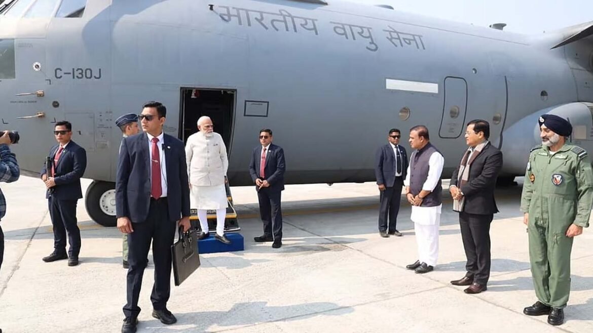అక్షరటుడే, వెబ్డెస్క్: Modi Assam Visit | ప్రధానమంత్రి నరేంద్ర మోదీ అస్సాంలోని మోరాన్లోని C-130J విమానం (C-130J Aircraft)లో ఈశాన్యంలోని మొదటి అత్యవసర ల్యాండింగ్ సౌకర్యం (ELF)లో చారిత్రాత్మక ల్యాండింగ్ చేశారు. త్వరలో ఎన్నికలు జరగనున్న రాష్ట్రంలో ఆయన శనివారం పర్యటించనున్నారు.