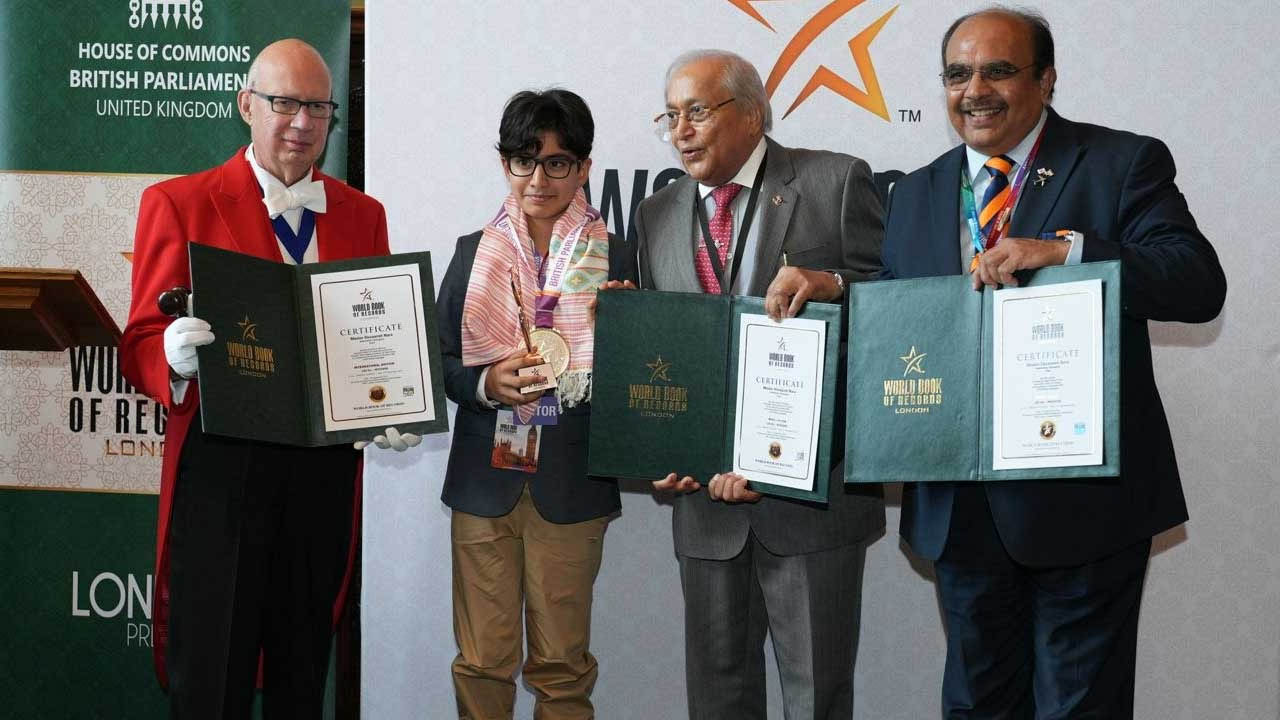 లండన్లో జరిగిన ప్రతిష్టాత్మక “వరల్డ్ బుక్ ఆఫ్ రికార్డ్స్”(World Book of Records) అవార్డు కార్యక్రమంలో దేవాన్ష్ కీలక గౌరవాన్ని అందుకున్నాడు. గతేడాది డిసెంబర్లో దేవాన్ష్ ప్రపంచ వ్యాప్తంగా చెస్ ప్రేమికులను ఆశ్చర్యపరిచాడు. కేవలం 9 ఏళ్ల వయసులోనే, అత్యంత క్లిష్టమైన 175 చెక్మేట్ పజిల్స్ను కేవలం 11 నిమిషాల 59 సెకన్లలో పరిష్కరించి, “ఫాస్టెస్ట్ చెక్మేట్ సాల్వర్ – 175 పజిల్స్” అనే టైటిల్ను దక్కించుకున్నాడు. ఈ అద్భుత ప్రతిభకు గుర్తింపుగా లండన్(London)లో జరిగిన వేడుకలో అవార్డు ప్రదానం జరిగింది.