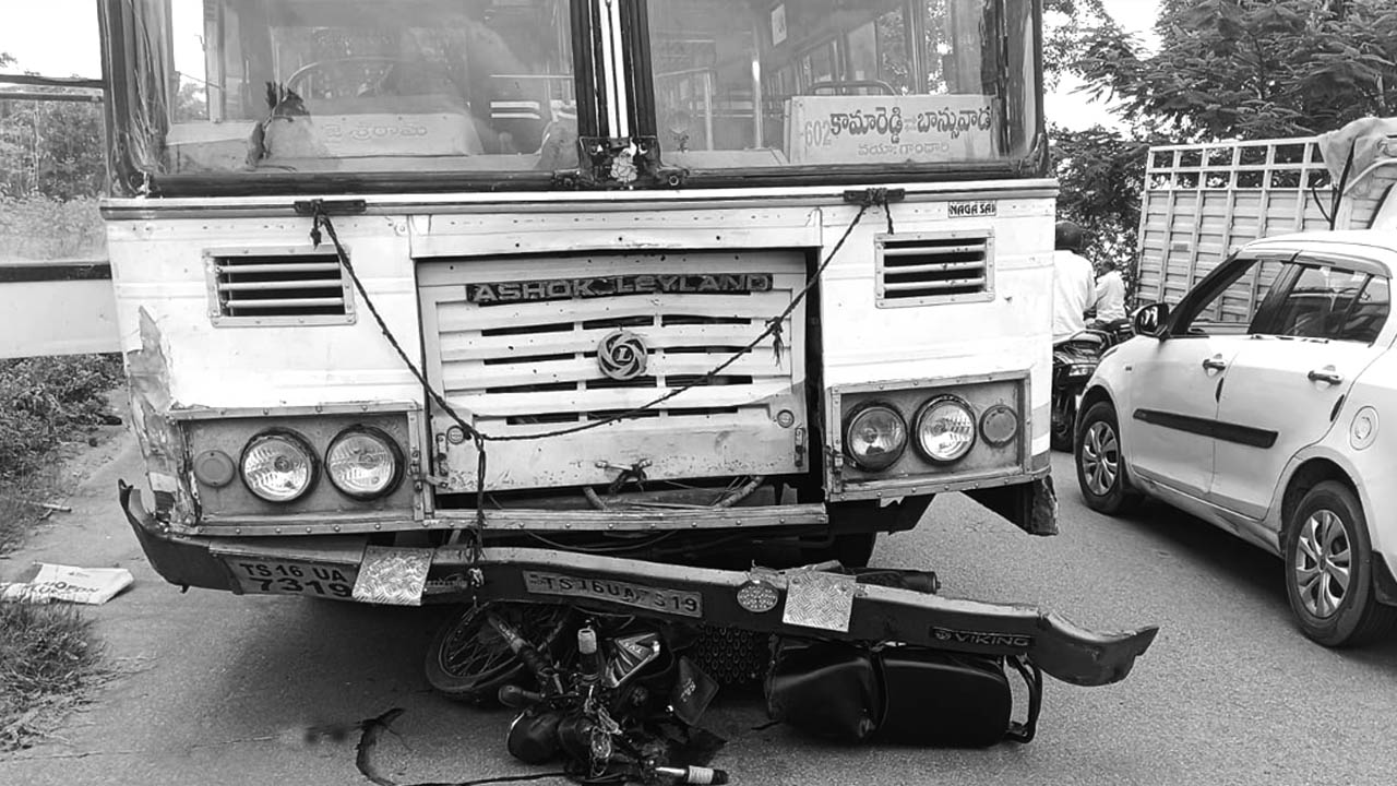 ఈ సంఘటనలో బాన్సువాడ మండలం సోమ్లనాయక్ తండాకు (Somlanayak Thanda) చెందిన రమావత్ గోవింద్ మృతి చెందారు. రమావత్ రాములు పరిస్థితి విషమంగా ఉండడంతో నిజామాబాద్ (Nizamabad) ఆస్పత్రికి తరలించారు. మరో బైక్పై ఉన్న ఇద్దరికి సైతం గాయాలయ్యాయి. బోర్లం క్యాంపు శివారులో పోలీసులు వాహనాలను తనిఖీ చేస్తుండడంతో వేరే మార్గం ద్వారా ద్విచక్ర వాహనదారులు వెళ్లే ప్రయత్నంలో కామారెడ్డికి వెళ్తున్న బస్సు ఢీకొట్టింది. అనంతరం గ్రామస్థులు గోవింద్ మృతదేహంతో పోలీస్ స్టేషన్ ఎదుట రాస్తారోకో నిర్వహించారు. పోలీసులు సంఘటనా స్థలానికి చేరుకుని విచారణ చేస్తున్నారు.