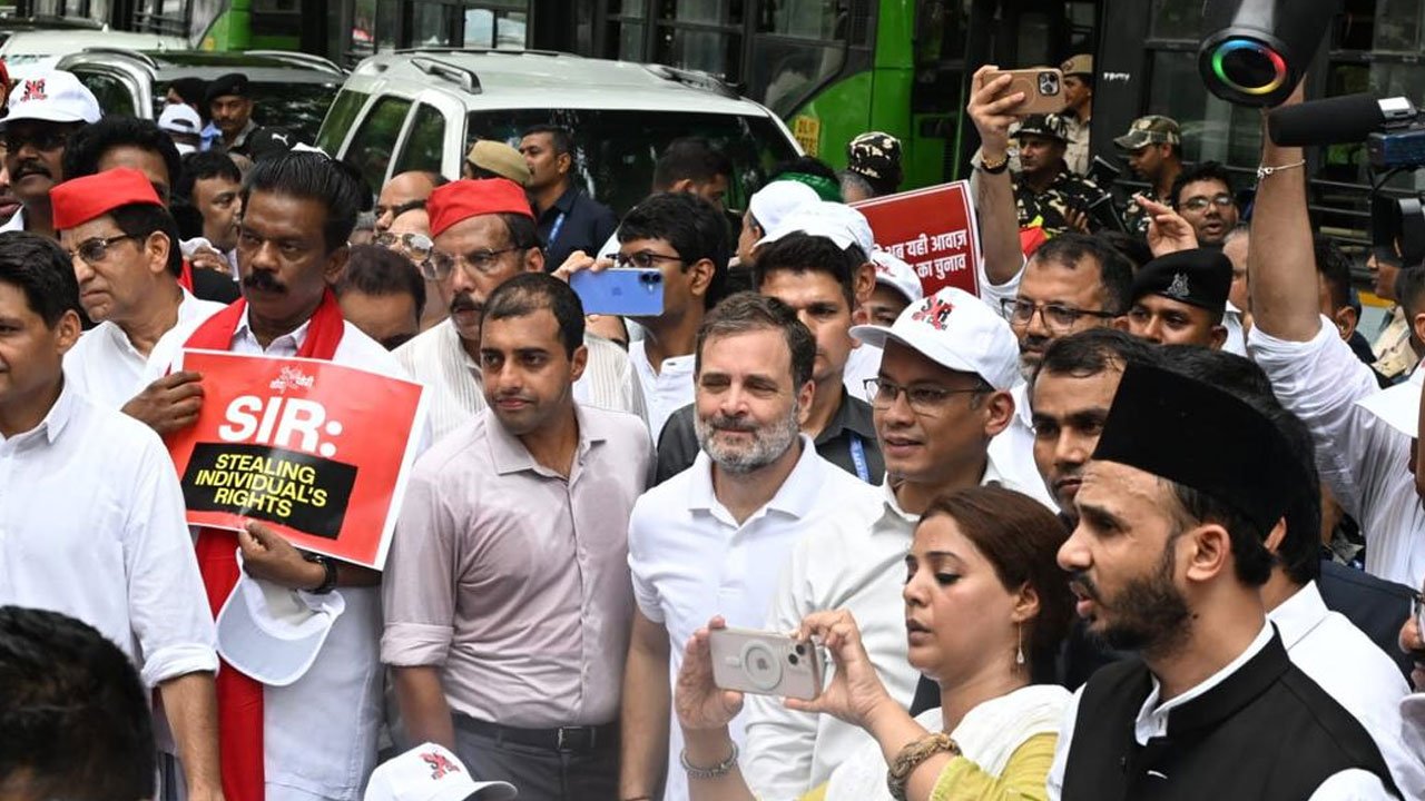 ఓటు చోరీ, బీహార్లో ఎన్నికల జాబితా సవరణను నిరసిస్తూ ఇండియా (INDIA) కూటమితో పాటు విపక్ష పార్టీల ఎంపీలు ఆందోళన నిర్వహించారు. ఇందులో భాగంగా పార్లమెంట్ నుంచి ఎన్నికల సంఘం (Election Commission) కార్యాలయం వరకు మార్చ్ తలపెట్టారు. 25 ప్రతిపక్ష పార్టీలకు చెందిన 300 మందికి పైగా లోక్సభ, రాజ్యసభ ఎంపీలు ఈ నిరసనలో పాల్గొన్నారు. అయితే విపక్ష ఎంపీల మార్చ్ను పోలీసులు అడ్డుకున్నారు.