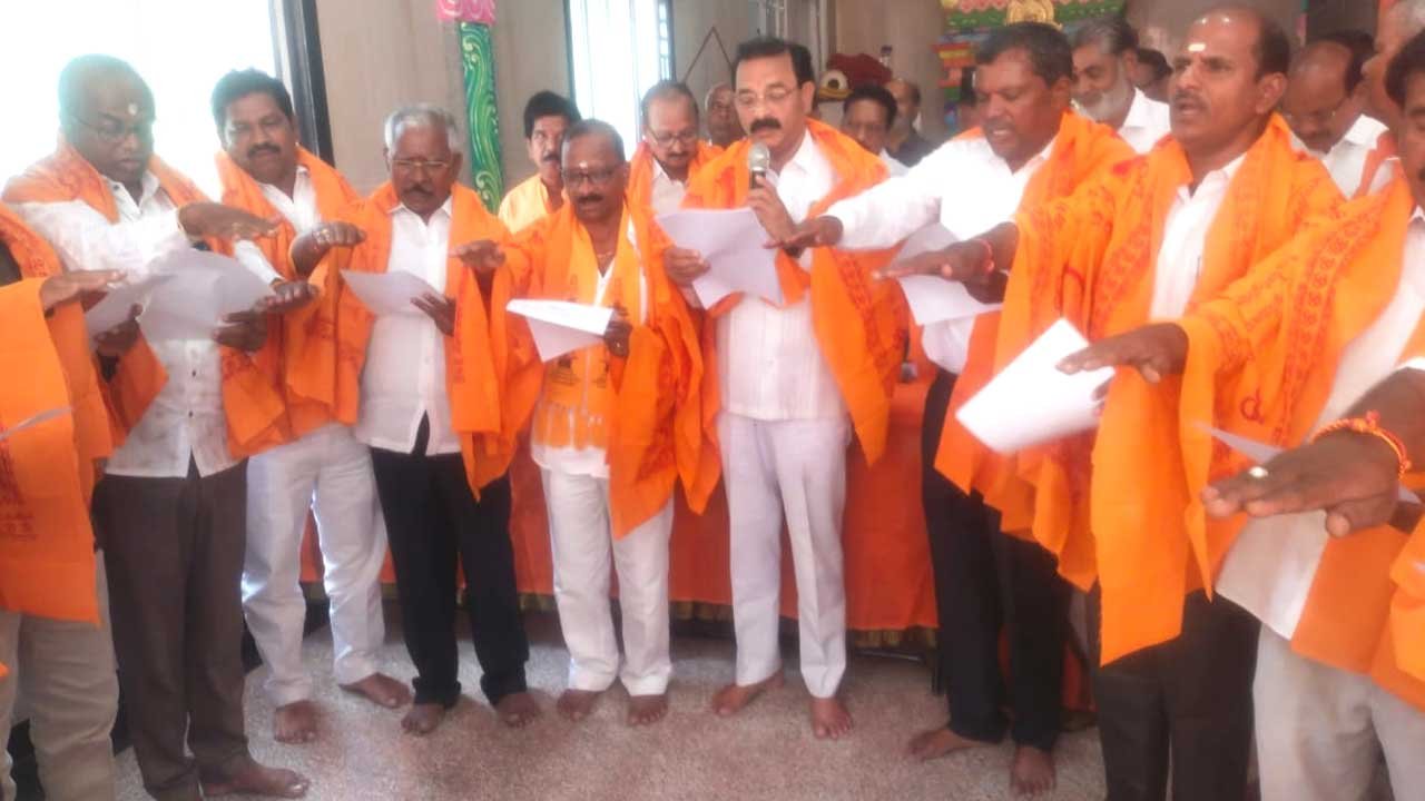 అక్షరటుడే, నిజామాబాద్ సిటీ: Nagara Padmasali Sangham | నూతనంగా ఎన్నుకోబడిన నగర పద్మశాలి సంఘం(Nagara Padmasali Sangham) కార్యవర్గ సభ్యులు సోమవారం మార్కండేయ మందిరంలో (Markandeya Temple) ప్రమాణ స్వీకారం చేశారు. ఎన్నికల అధికారి, అడ్వకేట్ గంగాప్రసాద్ నూతనంగా ఎన్నుకోబడిన కార్యవర్గంతో ప్రమాణస్వీకారం చేయించారు.