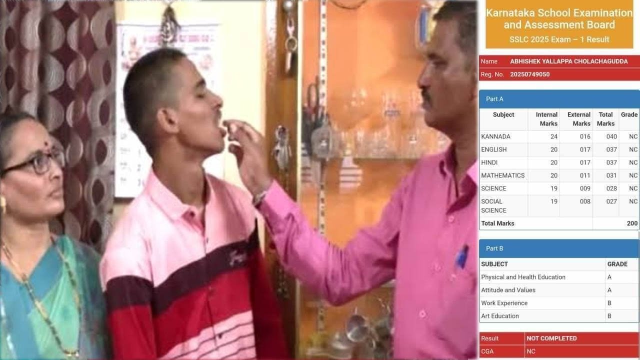 పరీక్షలకు exams సంబంధించిన ఒత్తిడిని stress ఎలా ఎదుర్కోవాలో సలహాలు అందిస్తారు. మరోవైపు తల్లిదండ్రులు Parents కూడా పిల్లలు పరీక్ష ఫలితాలు exam results వచ్చాక వారిని చాలా జాగ్రత్తగా కాపాడుకుంటూ వస్తున్నారు. ఎక్కడా ఎలాంటి అఘాయిత్యం చేసుకుంటారో అని టెన్షన్ tension పడుతున్నారు. అయితే 10వ తరగతి పరీక్షలో ఫెయిల్ fail అయ్యాడని కొడుకును ఎగతాళి చేస్తుంటే.. కేక్ కట్ చేయించి మనోధైర్యాన్ని ఇచ్చారు తల్లిదండ్రులు. కర్ణాటక – బాగల్కోట్లోని Karnataka – Bagalkot బసవేశ్వర్ ఇంగ్లీష్ మీడియం స్కూల్ లో పదో తరగతి చదివే విద్యార్థి అభిషేక్ చోళచగుడ్డకు Abhishek Cholachagudda పరీక్షలో 600కి 200 మార్కులు (32%) మాత్రమే వచ్చి 6 సబ్జెక్టులలోను ఫెయిల్ అయ్యాడు.