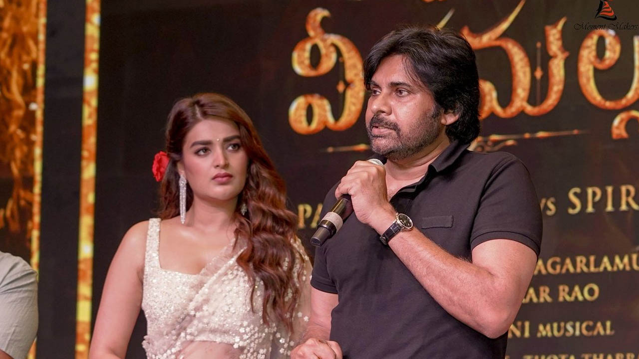 కొత్త కథలు తీస్తే.. నా భార్యను, పిల్లలను ఎవరు పోషించాలి? నా పార్టీని ఎవరు నడపాలి? నాకు దేశం పిచ్చి.. సమాజ బాధ్యత పిచ్చి ఎక్కువ అని పేర్కొన్నారు. హరిహరవీరమల్లు నాకు ఎంతో ఇష్టమైన సబ్జెక్ట్. భారత్ ఎవరినీ ఆక్రమించుకోలేదు.. అందరూ ఈ దేశాన్ని ఆక్రమించారు అని అన్నాడు. ఈ సినిమా కోసం నేను రోజుకు రెండు గంటల సమయం మాత్రమే కేటాయించా. ఉదయం 7 నుంచి 9 గంటల వరకూ వారానికి ఐదు రోజులు మాత్రమే షూటింగ్ చేశా. జ్యోతికృష్ణ ఎంతో నమ్మకంగా సినిమాను ముందుకు నడిపారు. నిధి అగర్వాల్(Heroine Nidhi Agarwal)ని చూసి నాకు సిగ్గు వేసి, నేను ప్రమోషన్స్కి వచ్చాను అని పవన్ అన్నారు. హరిహరవీరమల్లు ధర్మాన్ని చెప్పే సినిమా.. ఇది సస్పెన్స్ మూవీ కాదు.. కానీ గుండెల్ని తాకే కథ” అని స్పష్టం చేశారు. “కలెక్షన్ల సంగతి నాకు తెలియదు. కానీ బెస్ట్ ఎఫర్ట్ ఇచ్చా. డ్యాన్సులు చేశా.. ఫైట్స్ చేశా.. క్లైమాక్స్ను నేనే కంపోజ్ చేశా అని పవన్ తెలిపారు.