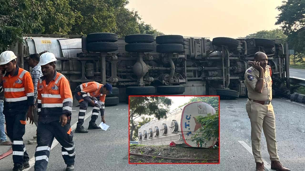 మెండోరా ఎస్సై సుహాసిని (SI Suhasini) తెలిపిన వివరాల ప్రకారం.. హైదరాబాద్ (Hyderabad) నుంచి నిర్మల్కు వెళ్తున్న పెట్రోల్ ట్యాంకర్ బుస్సాపూర్ వద్దకు రాగానే అదుపుతప్పి బోల్తా పడింది. అదృష్టవశాత్తు ఈ ఘటనలో ఎవరికీ ఎలాంటి ప్రమాదం జరగలేదు. సమాచారం అందుకున్న మెండోరా (Mendora) పోలీసులు వెంటనే ఘటనా స్థలానికి చేరుకున్నారు. పెట్రోల్ ట్యాంకర్ కావడంతో వాహనం వద్దకు ఎవరూ వెళ్లకుండా భద్రత ఏర్పాటు చేశారు. అనంతరం రోడ్డుకు అడ్డంగా ఉన్న లారీని తొలగించే ప్రయత్నం చేస్తున్నారు.