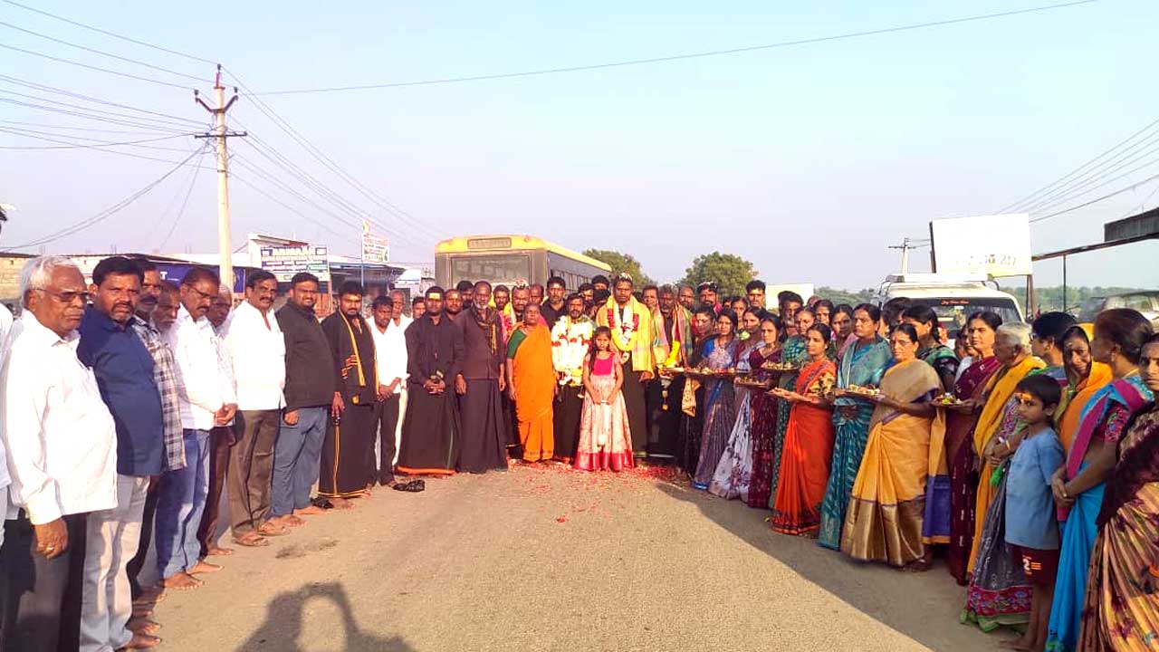 అక్షరటుడే, కోటగిరి: Pothangal | పాదయాత్ర ద్వారా శబరిమల (Sabarimala) దర్శనం అపూర్వఘట్టమని అయ్యప్ప స్వాములు పేర్కొన్నారు. పోతంగల్ మండల (Potangal mandal) కేంద్రం నుంచి నవంబర్ 2న పాదయాత్రగా వెళ్లిన స్వాములు బుధవారం తిరిగి స్వగ్రామానికి చేరుకున్నారు. ఈ సందర్భంగా వారికి పటాకులు కాలుస్తూ యువకులు, గ్రామస్థులు స్వాగతం పలికారు. మహిళలు మంగళ హారతులతో స్వాగతించారు.