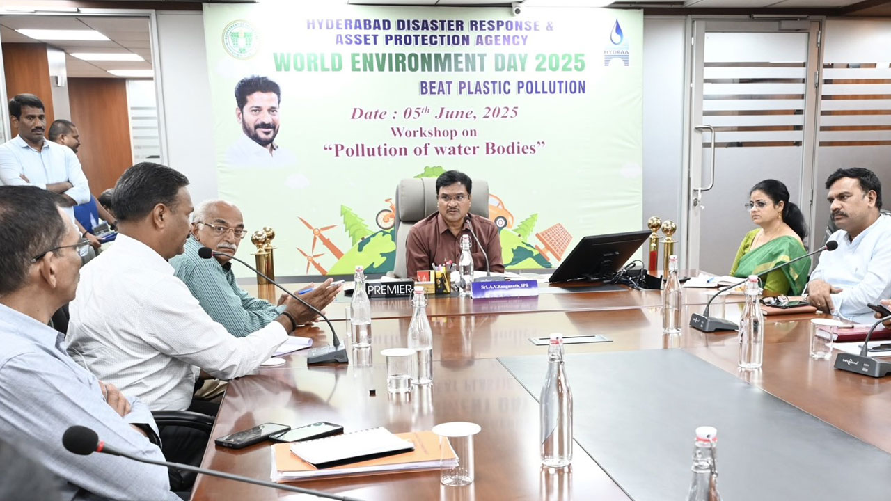 అక్షరటుడే, వెబ్డెస్క్ : Hydraa | ప్లాస్టిక్ వ్యర్థాలను (Plastic Waste) నియంత్రించకపోతే.. పర్యావరణానికి పెనుముప్పు తప్పదని పర్యావరణవేత్తలు హెచ్చరిస్తున్నారు. నాలాల ద్వారా ప్లాస్టిక్ వ్యర్థాలు చెరువుల్లోకి చేరి పర్యావరణానికి పెను సవాల్గా మారుతాయని చెబుతున్నారు. నాలాలు, చెరువుల్లో ప్లాస్టిక్ వ్యర్థాలు నియంత్రించడానికి ఎవరికి వారు ముందుకు రావాలని సూచిస్తున్నారు. ప్రపంచ పర్యావరణ దినోత్సవాన్ని (Environment Day) పురస్కరించుకుని గురువారం హైడ్రా (Hydraa) కార్యాలయంలో `పొల్యూషన్ ఆఫ్ వాటర్ బాడీస్` అనే అంశంపై హైడ్రా కమిషనర్ రంగనాథ్ (Ranganath) ఆధ్వర్యంలో జరిగిన సదస్సులో పలువురు పర్యావరణవేత్తలు మాట్లాడారు.