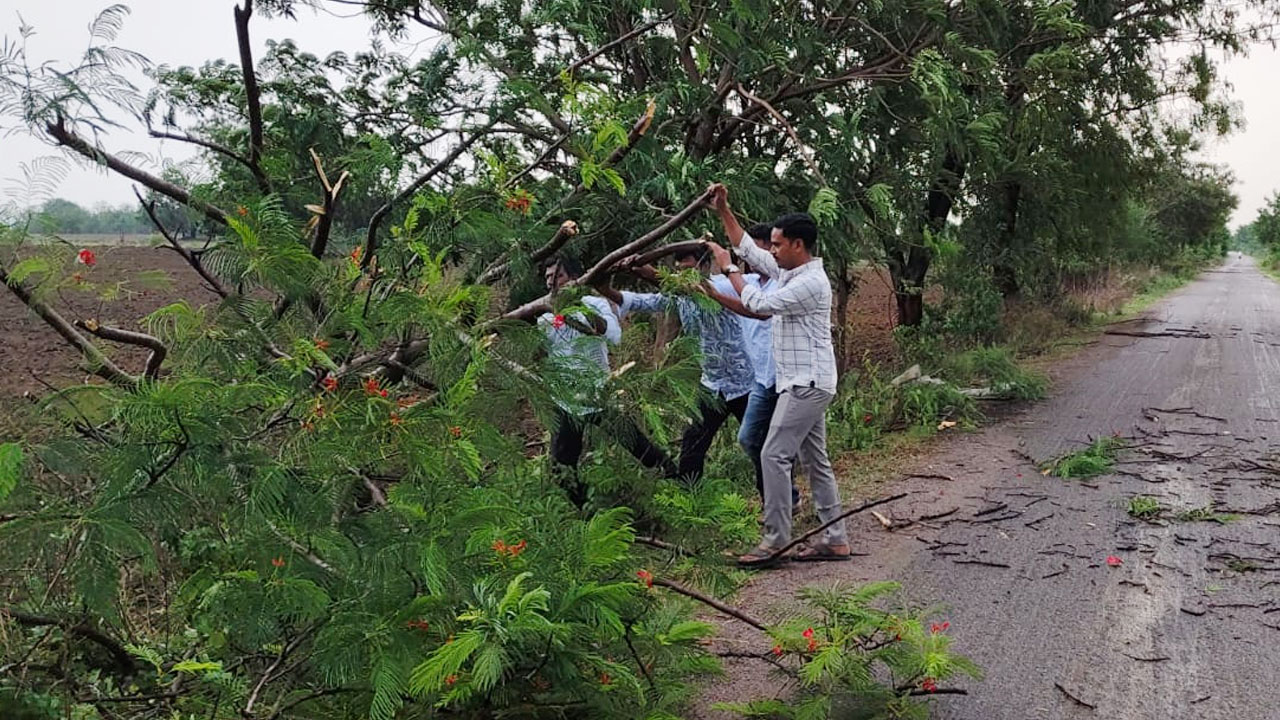 అక్షరటుడే, బిచ్కుంద : Madnoor | మద్నూర్ మండలంలో ఆదివారం సాయంత్రం భారీగా ఈదురు గాలులు వీచాయి. గాలుల తీవ్రతకు పలుచోట్ల చెట్లు, విద్యుత్ స్తంభాలు విరిగిపడ్డాయి. దీంతో కరెంట్ సరఫరాకు అంతరాయం ఏర్పడింది. రోడ్లపై అడ్డంగా పడ్డ చెట్లను తొలగించేందుకు ఎస్సై (Madnoor SI) విజయ్ కొండ చర్యలు చేపట్టారు. సిబ్బందితో కలిసి రోడ్డుపై పడ్డ చెట్లను ఆయన తొలగించారు. దీంతో తిరిగి వాహనాల రాకపోకలు మొదలయ్యాయి.