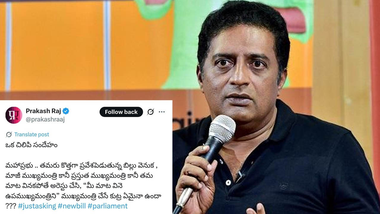 ప్రస్తుతం ఈ బిల్లును విపక్షాల ఆందోళనల నేపథ్యంలో జేపీసీ (జాయింట్ పార్లమెంటరీ కమిటీ) కి పంపించారు. త్వరలో సవరణలతో మళ్లీ ఆమోదించేందుకు కేంద్రం సిద్ధమవుతోంది.ఈ క్రమంలో ప్రకాష్ రాజ్ (Prakash Raj) సంచలన ట్వీట్ చేశారు. “ఒక చిన్న సందేహం మహాప్రభూ… మీరు తెచ్చే బిల్లుల వెనక, ప్రస్తుత ముఖ్యమంత్రి కానీ, మాజీ ముఖ్యమంత్రి కానీ మీ మాట వినకపోతే అరెస్ట్ చేసి… మీ మాట వినే ఉపముఖ్యమంత్రిని ముఖ్యమంత్రి చేయాలనే కుట్ర ఉందా?” అంటూ ఆయన ట్వీట్ చేశారు. ప్రకాశ్ రాజ్ ఎవరినీ పేరుపెట్టకపోయినా, ట్వీట్లోని వ్యాఖ్యలు స్పష్టంగా నారా చంద్రబాబు నాయుడు(Nara Chandrababu Naidu), వైఎస్ జగన్ మోహన్ రెడ్డి, పవన్ కళ్యాణ్(Pawan Kalyan) లను సూచిస్తున్నాయని రాజకీయ విశ్లేషకులు అభిప్రాయపడుతున్నారు.