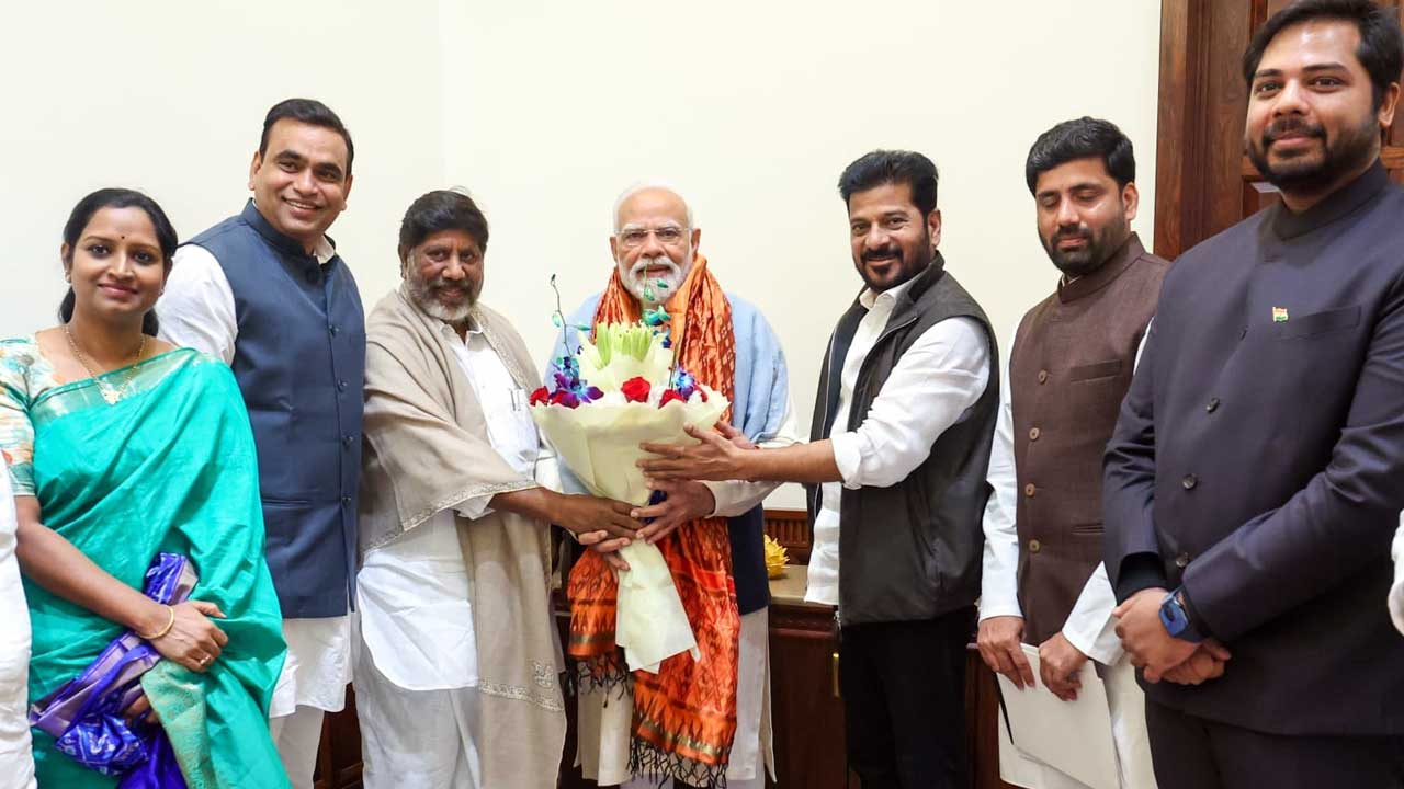 అక్షరటుడే, వెబ్డెస్క్ : Global Summit | తెలంగాణ ప్రభుత్వం డిసెంబర్ 8, 9 తేదీల్లో నిర్వహిస్తున్న తెలంగాణ రైజింగ్ గ్లోబల్ సమ్మిట్కు (Telangana Rising Global Summit) హాజరు కావాలని ప్రధాని మోదీని (Prime Minister Modi) సీఎం రేవంత్రెడ్డి ఆహ్వానించారు. ఉప ముఖ్యమంత్రి భట్టి విక్రమార్కతో కలిసి ప్రధానిని కలిశారు.
