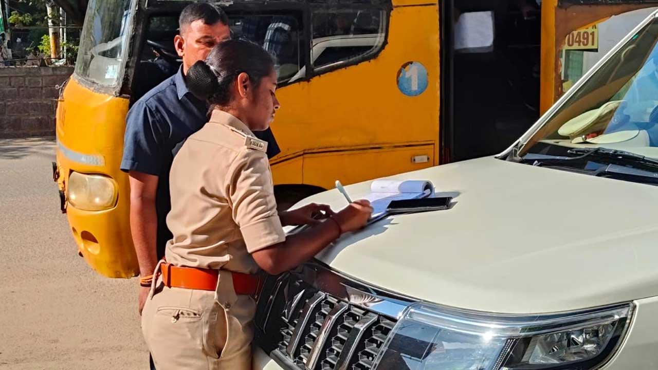 నగరంలో తనిఖీలు నిర్వహించి నాలుగు స్కూల్ బస్సులపై కేసులు నమోదు చేశారు. ప్రధానంగా కొన్ని బస్సుల్లో రెన్యూవల్ చేయని సిలిండర్లు, ఫస్ట్ ఎయిడ్ బాక్స్ లేకపోవడంతో కేసులు నమోదు చేసినట్లు ఎంవీఐ కిరణ్కుమార్ తెలిపారు.