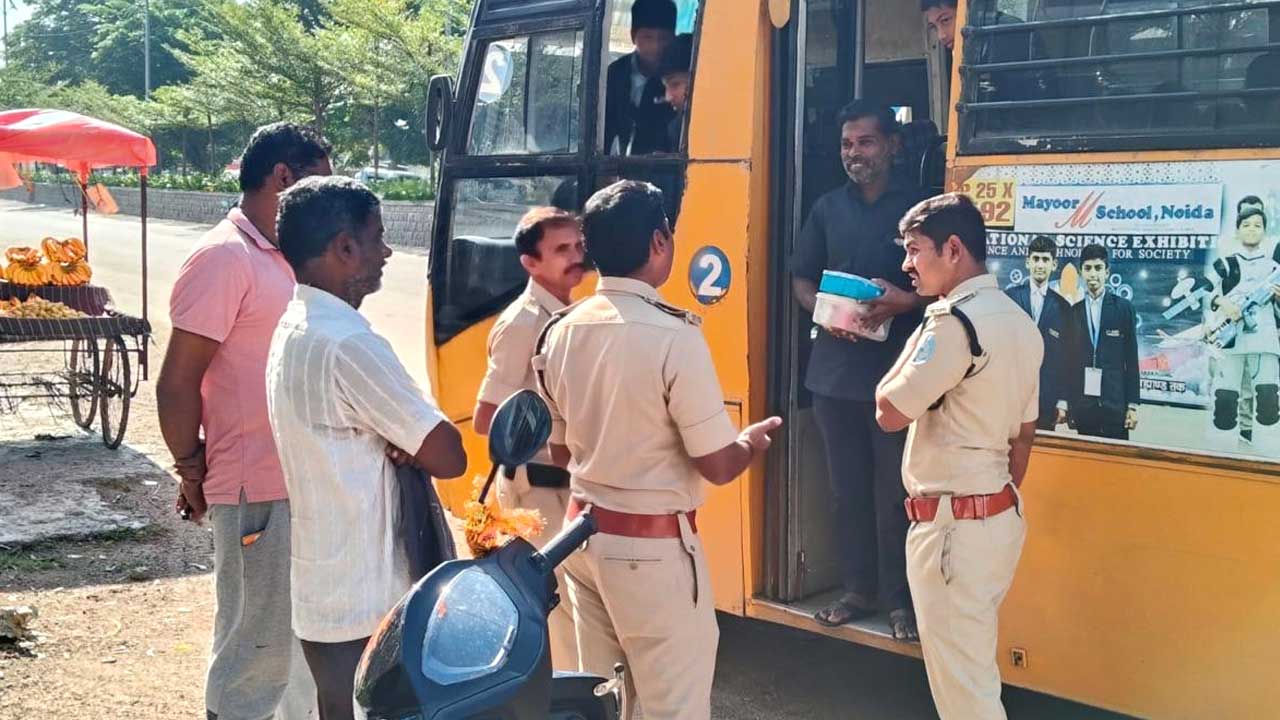 ఈ సందర్భంగా ఆయన మాట్లాడుతూ.. బస్సులు పూర్తి ఫిట్నెస్తో ఉండాలన్నారు. ప్రధానంగా స్కూల్ బస్సుల్లో ఫస్ట్ ఎయిడ్ బాక్స్(First aid box), ఫైర్ రిసిస్ట్ సిలిండర్, గ్రిల్స్ తదితర సామగ్రి తప్పనిసరిగా ఉండేలా చూడాలన్నారు.