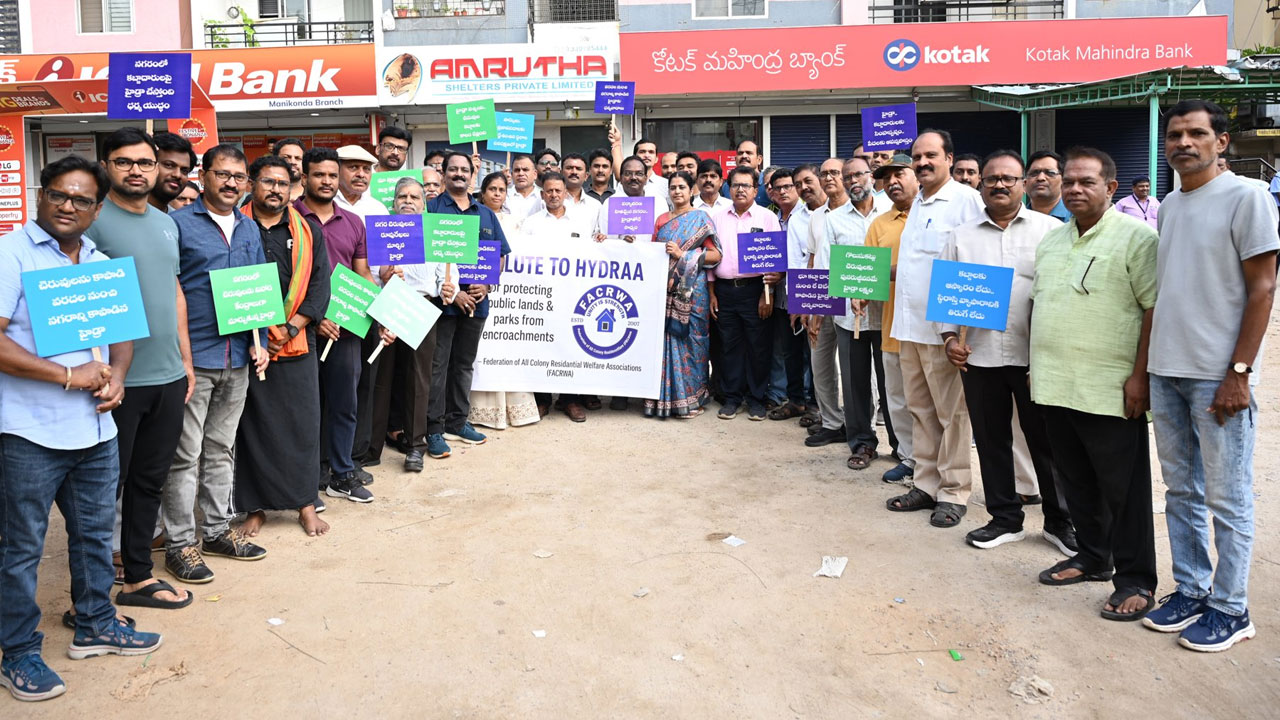 మణికొండ (Manikonda) మర్రి చెట్టువద్ద దాదాపు 15 కాలనీల వారు బుధవారం ర్యాలీ నిర్వహించారు. మణికొండ మున్సిపాలిటీలో రూ. వెయ్యి కోట్లకు పైగా విలువైన పార్కులను కాపాడి నగర ప్రజలకు ప్రాణవాయువును అందించారంటూ ప్లకార్డులు ప్రదర్శించారు. నెక్నాంపూర్ విలేజ్, తిరుమల హిల్స్ నుంచి చిన్నా పెద్ద వచ్చి ర్యాలీలో పాల్గొన్నారు. ఖాజాగూడ ప్రశాంతి హిల్స్లో హైడ్రా కాపాడిన పార్కుల్లో మొక్కలు నాటారు. కొండాపూర్ (Kondapur)లోని రాఘవేంద్ర కాలనీలో ఉస్మానియా యూనివర్సిటీ ప్రొఫెసర్స్ కాలనీలో 4300 గజాల ప్రజావసరాలకు ఉద్దేశించిన స్థలాలను కాపాడారంటూ ర్యాలీ నిర్వహించారు.
