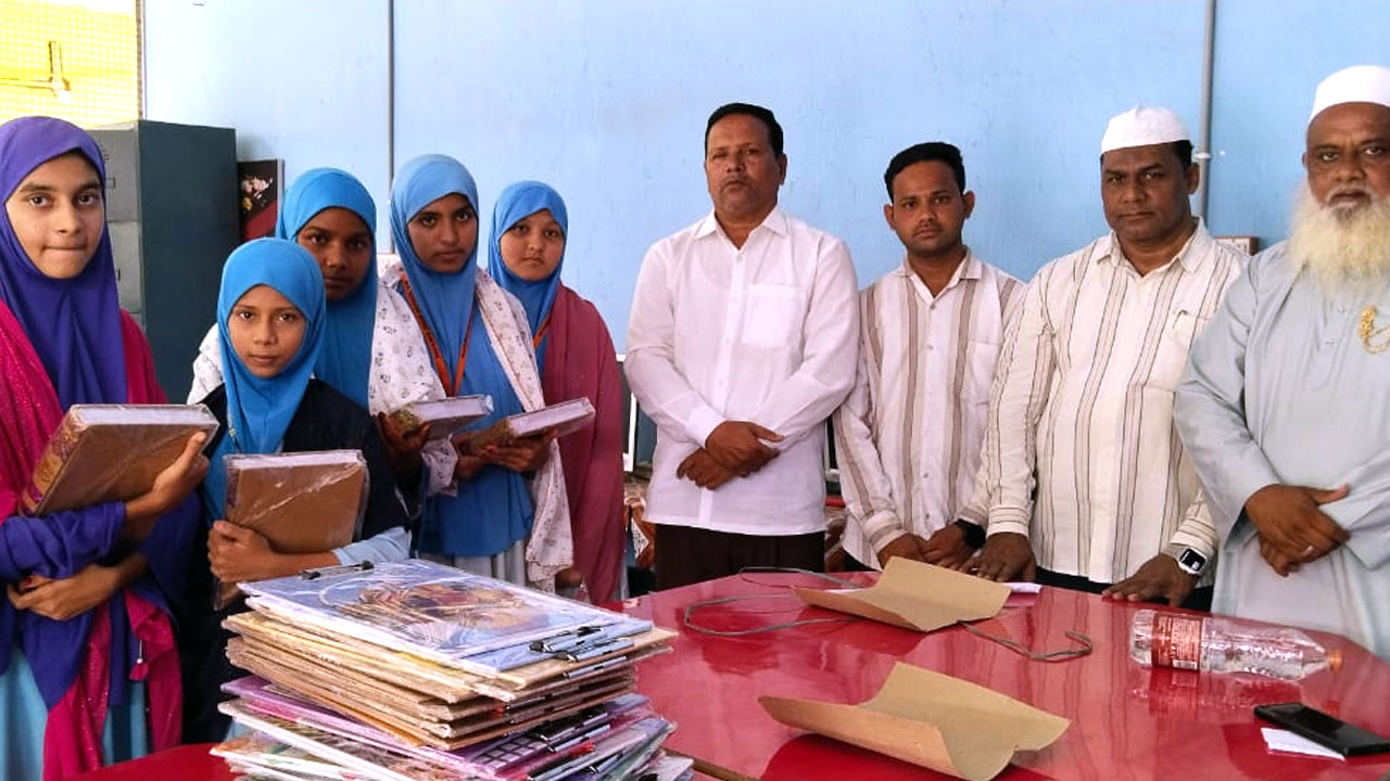 అక్షరటుడే, బోధన్: Renjal Mandal | పట్టణంలోని రెంజల్ బేస్లో గల నిజామియా పాఠశాలలో విద్యార్థులకు ఖురాన్ పుస్తకాలు, బుర్ఖా (Quran books and burqas) పంపిణీ చేశారు. మిలాద్ ఉన్ నబీ సందర్భంగా అబ్దుల్ ఖాదర్ వెల్ఫేర్ సొసైటీ ఆధ్వర్యంలో నిర్వహించిన కార్యక్రమంలో ముఖ్య అతిథి సయ్యద్ ఖాజా నాజినుద్దీన్ సుల్తాన్ ఖాద్రి హాజరయ్యారు.