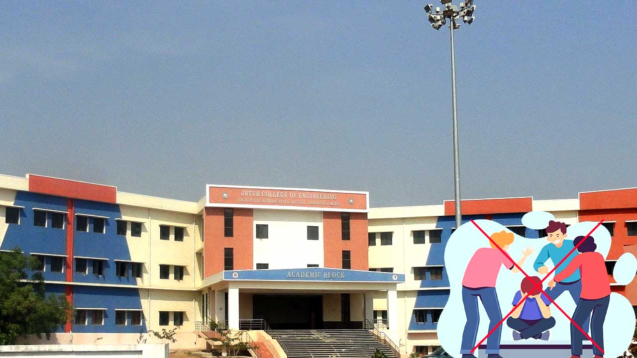 జగిత్యాల జిల్లా కొడిమ్యాల మండలం నాచుపల్లిలో జేఎన్టీయూ కాలేజీ (JNTU college) ఉంది. ఇంట్రాక్షన్ పేరుతో సీనియర్లు జూనియర్లు ర్యాగింగ్ చేశారు. బీటెక్ సెకండియర్ విద్యార్థులు (BTech second-year students) కొత్తగా చేరిన వారిని మానసికంగా వేధించారు. వారి వేధింపులతో భయపడిన పలువురు విద్యార్థులు తరగతులకు హాజరు కాలేదు.