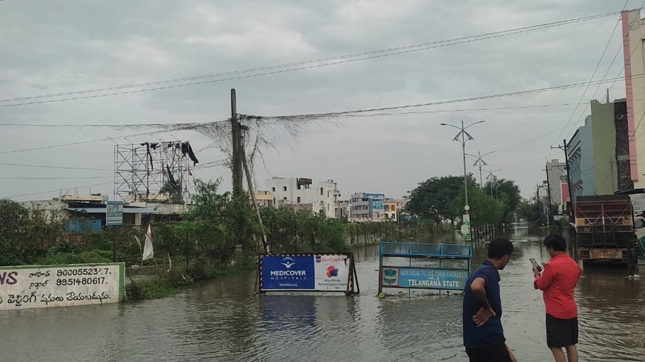 మొంథా తుపాన్ ప్రభావంతో ఉమ్మడి వరంగల్ (Warangal) జిల్లా అతలాకుతలం అయింది. కొన్ని గంటల పాటు ఎడతెరిపి లేకుండా కురిసిన వాన పడింది. రికార్డు స్థాయిలో 42.2 సెంటీమీటర్ల వర్షపాతం నమోదు కావడంతో వరద ముంచెత్తింది. దీంతో అధికారులు గురువారం ఉమ్మడి వరంగల్ జిల్లాల్లో విద్యా సంస్థలకు సెలవు ప్రకటించారు. వరంగల్లోని హంట్రోడ్ లోని సోషల్ వెల్ఫేర్ హాస్టల్లోకి వరద నీరు చేరింది. దీంతో అధికారులు విద్యార్థులను సురక్షిత ప్రాంతాలకు తరలించారు.