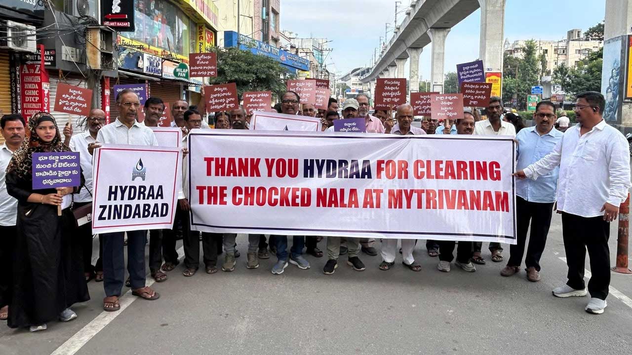 వరద ముప్పును తప్పించిన హైడ్రాకు పలు కాలనీ నివాసితులు ధన్యవాదాలు తెలిపారు. అమీర్పేట (Ameerpet), శ్రీనివాస్ నగర్, గాయత్రినగర్, కృష్ణ నగర్, అంబేద్కర్ నగర్ నుంచి వచ్చినా ఆ కాలనీల ప్రతినిధులు గురువారం మైత్రివనం వద్ద ప్లకార్డులను ప్రదర్శించి హైడ్రాకు ధన్యవాదాలు తెలిపారు. హైడ్రా అధికారులు భూగర్భ పైపులైన్లలో (underground pipelines) పూడికను తొలగించడంతో తమ కాలనీల్లో నీరు నిలవడం లేదని హర్షం వ్యక్తం చేశారు. ప్యాట్నీ నాలాను విస్తరించి పైన ఉన్న ఏడెనిమిది కాలనీలకు వరద ముప్పు తప్పించిన హైడ్రాకు అక్కడి వాళ్ళు కృతజ్ఞతలు తెలిపారు. బుధవారం సైతం పలు కాలనీల్లో ర్యాలీలు చేపట్టారు. ఇన్ని రోజులు లేనిది, ఇప్పుడు ర్యాలీలు చేపడుతుండటంతో జూబ్లీహిల్స్ ఎన్నికల కోసమేనని పలువురు భావిస్తున్నారు.