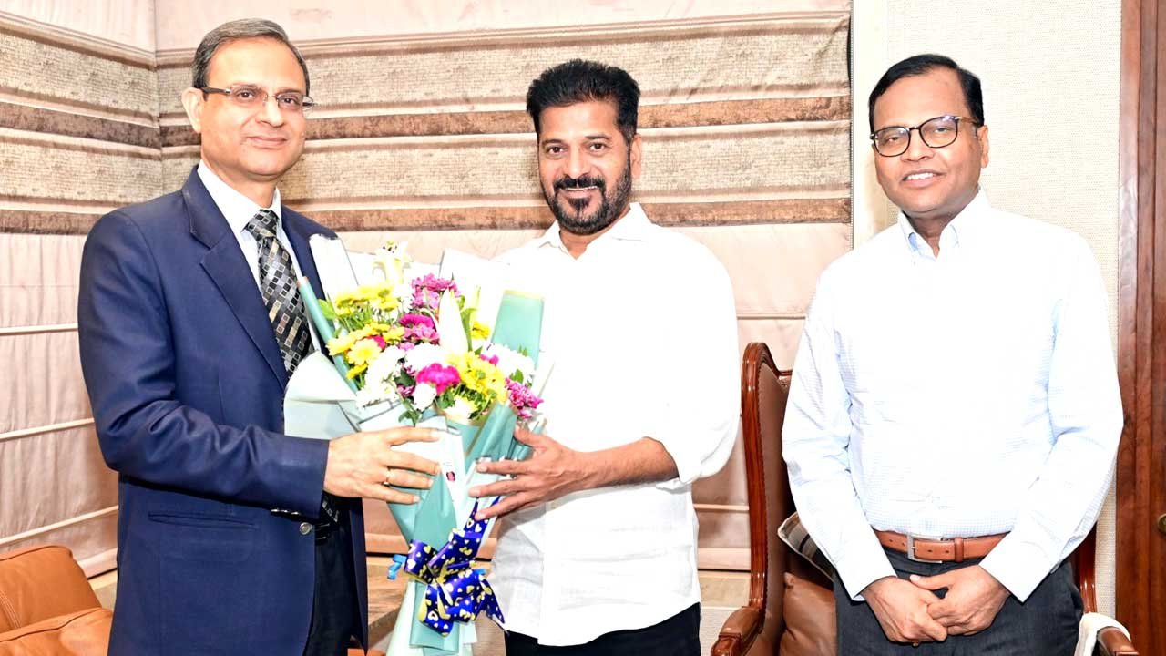 అక్షరటుడే, వెబ్డెస్క్: RBI Governor | ఆర్బీఐ గవర్నర్ సంజయ్ మల్హోత్రా (RBI Governor Sanjay Malhotra) ముఖ్యమంత్రి రేవంత్ రెడ్డిని (Chief Minister Revanth Reddy) గురువారం మర్యాదపూర్వకంగా కలిశారు. ఆర్బీఐ బోర్డు సమావేశంలో పాల్గొనడానికి హైదరాబాద్ వచ్చిన సందర్భంగా సీఎంను జూబ్లీహిల్స్లోని ఆయన నివాసంలో కలిశారు.