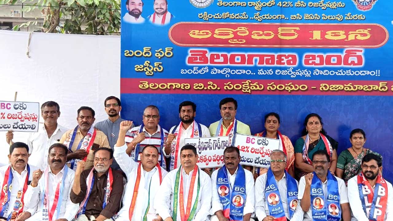 అక్షరటుడే, ఇందూరు: BC Reservations | బీసీలకు 42 శాతం రిజర్వేషన్లు అమలు చేయాల్సిందేనని అన్ని పార్టీల నాయకులు డిమాండ్ చేశారు. బీసీ జేఏసీ (BC JAC) ఆధ్వర్యంలో శనివారం బంద్ నిర్వహించి ధర్నా చౌక్లో దీక్ష చేపట్టారు. ఈ సందర్భంగా పలువురు వక్తలు మాట్లాడుతూ.. న్యాయపోరాటం చేస్తున్న బీసీలకు అందరి మద్దతు ఉంటుందన్నారు.
