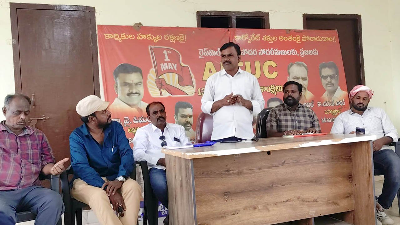 యూనియన్ కార్యాలయంలో ఆదివారం ఆయన విలేకరుల సమావేశంలో మాట్లాడారు. కేంద్రప్రభుత్వం రద్దు చేసిన 44 రకాల చట్టాలను పునరుద్ధరించి, నాలుగు లేబర్ కోడ్లను రద్దు చేయాలని కోరారు. దేశవ్యాప్త సమ్మెలో భాగంగా జులై 9న రైస్ మిల్లుల్లో సమ్మె చేపడుతున్నట్లు పేర్కొన్నారు. ప్రతి కార్మికుడు సమ్మెను జయప్రదం చేయాలని కోరారు. సమావేశంలో యూనియన్ ప్రధాన కార్యదర్శి అనిల్, ఉపాధ్యక్షుడు జాఫర్, సహాయ కార్యదర్శి సాయిలు, లాయక్, రమేష్, తిరుపతిరెడ్డి, శ్రీనివాసరెడ్డి, రాజు, శివకుమార్, తదితరులు పాల్గొన్నారు.