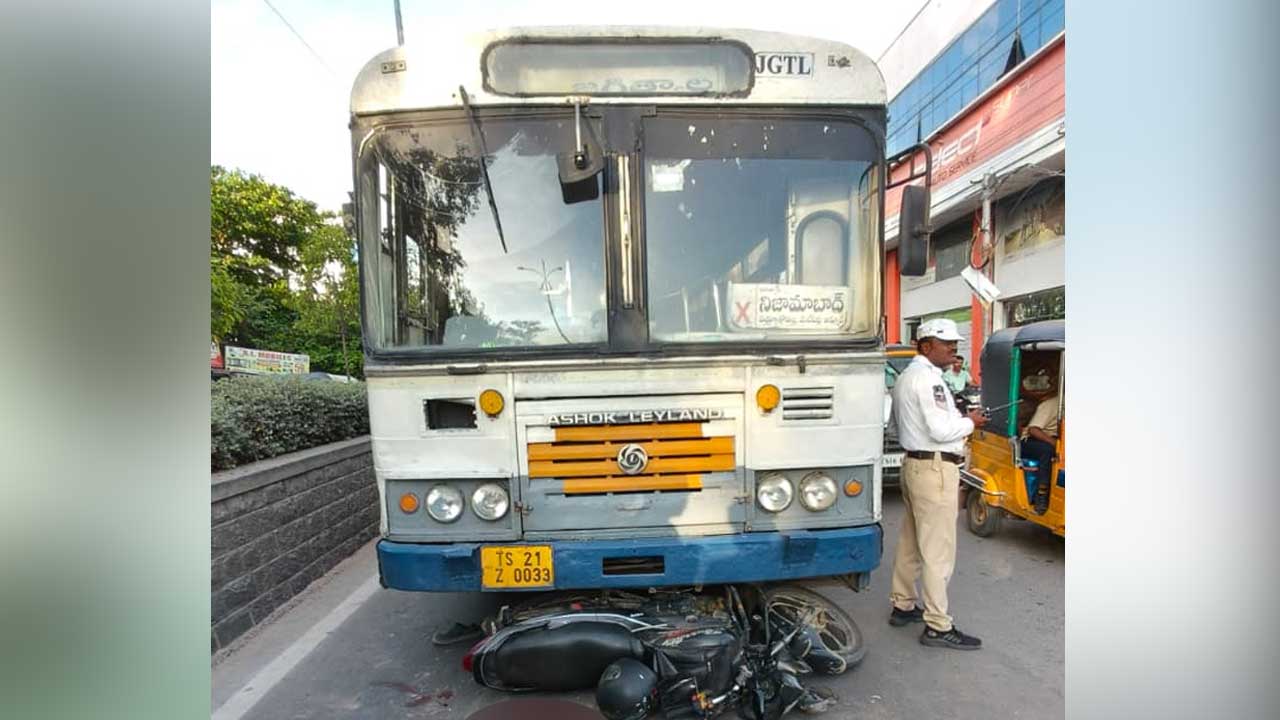 మూడో టౌన్ పోలీసులు తెలిపిన వివరాల ప్రకారం.. నగరంలోని రైల్వే కమాన్ (Railway Comman) సమీపంలోని అయ్యప్ప గుడి వద్ద ఆర్టీసీ బస్సు బైక్పై వెళ్తున్న సంతోష్ అనే వ్యక్తిని వెనుక నుంచి ఢీకొట్టింది. దీంతో అతడికి తీవ్రగాయాలయ్యాయి.