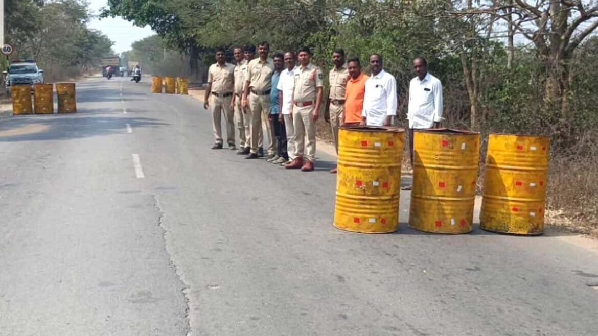 పాల్వంచ మండల (Palvancha Mandal) కేంద్రంతో పాటు భవానీపేట గ్రామాల మధ్యలో ఉన్న ఎన్హెచ్ 11 రహదారిపై రేడియంతో కూడిన 9 డ్రమ్ములను శనివారం ఏర్పాటు చేశారు. ప్రమాదాల నివారణతో పాటు వాహనాల వేగాన్ని తగ్గించేందుకు రూరల్ సీఐ రామన్ (Rural CI Raman) ఆధ్వర్యంలో మాచారెడ్డి పోలీసులు (Machareddy Police) ఏర్పాటు చేశారు. గతంలో కూడా ఇదే స్థలంలో రేడియంతో కూడిన 12 డ్రమ్ములను ఏర్పాటు చేయడం జరిగిందని పోలీసులు తెలిపారు. కార్యక్రమంలో కామారెడ్డి రూరల్ సీఐ రామన్, మాచారెడ్డి ఎస్సై అనిల్, పోలీస్ సిబ్బంది, పాల్వంచ, భవానీపేట సర్పంచ్, ఉప సర్పంచులు పాల్గొన్నారు.