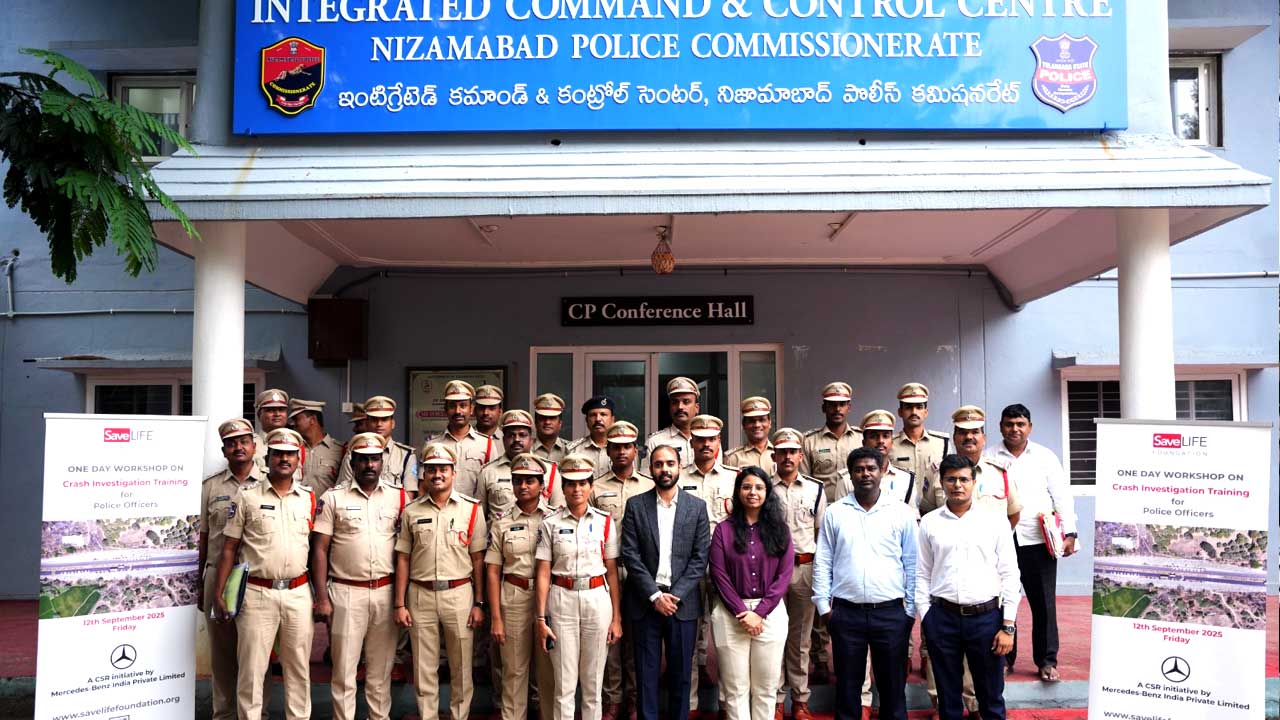 అక్షరటుడే, నిజామాబాద్ సిటీ: Nizamabad City | రోడ్డు భద్రతా (road safety) ప్రమాణాలను పెంచుకోవడం ద్వారా రోడ్డు ప్రమాదాలను నివారించుకునే అవకాశం ఉంటుందని సీపీ సాయిచైతన్య (CP Sai Chaitanya) పేర్కొన్నారు. నగరంలోని సీపీ కార్యాలయంలోని కమాండ్ కంట్రోల్ సెంటర్లో సోమవారం సేవ్ లైఫ్ ఫౌండేషన్ (Save Life Foundation), మెర్సిడెస్ బెంజ్ ఇండియా (Mercedes Benz India) ఆధ్వర్యంలో పోలీసులు శాస్త్రీయ రోడ్డు భద్రత విధానాలపై వన్డే వర్క్షాప్ నిర్వహించారు.