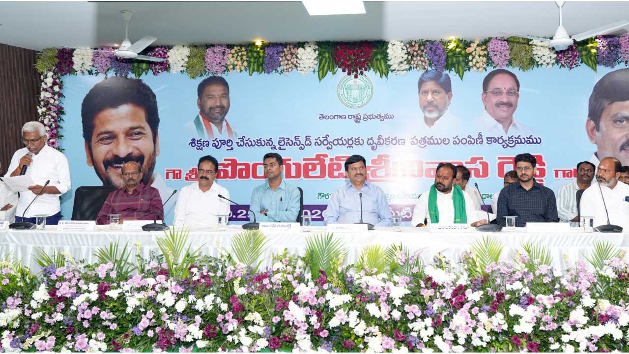 శిక్షణ పూర్తి చేసుకున్న లైసెన్స్డ్ సర్వేయర్లకు ఖమ్మం కలెక్టరేట్లో (Khammam Collectorate) మంత్రి లైసెన్స్లను పంపిణీ చేశారు. ఈ సందర్భంగా మాట్లాడుతూ.. భూ సర్వే కోసం గతంలోని టేపులు, గొలుసుల పద్ధతులకు స్వస్తి పలికి, సెంటీమీటర్ల తేడాతో ఖచ్చితత్వం వచ్చేలా ‘రోవర్స్’ సాంకేతికతను వాడుతున్నట్లు తెలిపారు. ఇప్పటికే 600 రోవర్లను కొనుగోలు చేసి జిల్లాలకు పంపిణీ చేశామన్నారు.