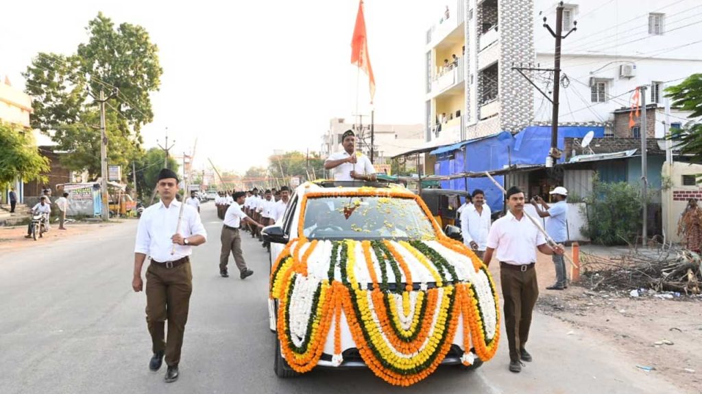 అక్షరటుడే, ఇందూరు: RSS Indur | రాష్ట్రీయ స్వయంసేవక్ సంఘ్ (Rashtriya Swayamsevak Sangh) ఇందూరు నగర మహా పథ సంచలన్ను (RSS Path sanchalan) ఆదివారం ఘనంగా నిర్వహించారు. నగరంలోని చంద్రశేఖర్ నగర్ కాలనీలో ఉన్న హెచ్పీఎస్ పాఠశాల నుంచి కార్యక్రమం ప్రారంభమైంది.